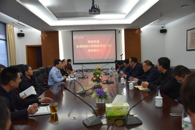 2018年12月10日下午,西藏民族大学书记欧珠、副校长袁东亚一行到访厦大出版社。厦大出版社社长郑文礼、总编辑宋文艳等代表全社热烈欢迎欧珠书记一行的到来。
