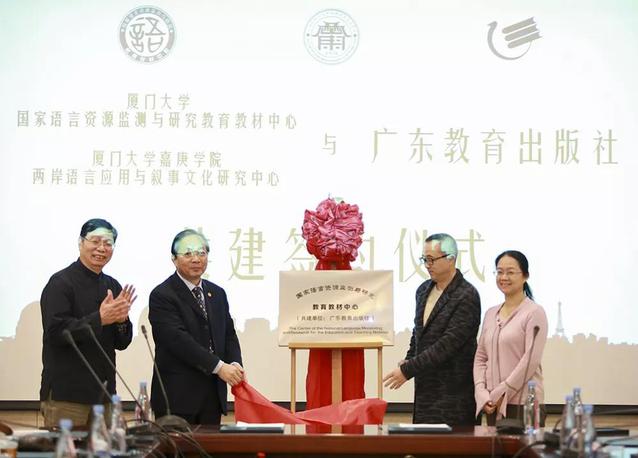 12月14日下午,我校国家语言资源监测与研究教育教材中心与广东教育出版社于厦门大学颂恩楼215会议室进行共建单位的签约仪式。厦门大学社科处处长陈武元教授,人文学院副院长朱人求教授,广东教育出版社副书记、副社长李远谋编审,广东教育出版社主任黄倩副编审,国家语言资源监测与研究教育教材中心主任苏新春教授、副主任郑泽芝教授、语言研究部副部长李焱副教授、副部长金美副教授,以及赵泽明助理教授、杜晶晶副教授、孙园园副教授、卜祥忠副教授等研究成员出席活动。仪式由朱人求主持。