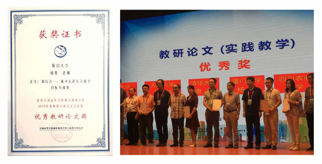 在实践教学分论坛上,杨哲老师代表厦门大学城市规划系受邀进行《知行合一:城乡认识实习教学目标与成果》主题演讲,受到与会嘉宾的热烈讨论与一致好评,获得本年度教研论文(实践教学)优秀奖。在课程作业评优环节,专指委评委们对参赛作业的优缺点进行了精彩的点评,给参会的师生们极大的启发,受益良多。