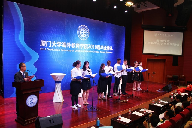 6月22日,海外教育学院2018届毕业典礼在翔安校区坤銮楼B102多功能厅隆重举行。海外教育学院/国际学院副院长傅万里、副院长黄冠华、党委副书记罗俊峰、学院全体教师、行政工作人员、全体中外毕业生以及校友代表出席了毕业典礼。典礼由学院党委副书记伍伟平主持。