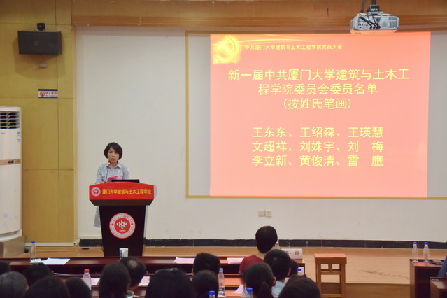 大会以无记名投票方式差额选举产生了中共厦门大学建筑与土木工程学院新一届委员会9名委员(按姓氏笔画为序):王东东、王绍森、王瑛慧、文超祥、刘姝宇、刘梅、李立新、黄俊清、雷鹰。