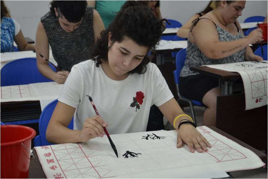 在文化体验活动中,外文学院外语教学部教师席克琳和国画艺术家王雨带领西班牙师生们踊跃参与到中国书画和剪纸的创作之中。营员们还前往厦门大学人文学院“芳草天涯”茶舍感悟茶道,学包饺子体验中国饮食文化,向厦门大学武术队队长唐成讨教南拳套路以体验中国武术的博大精深。