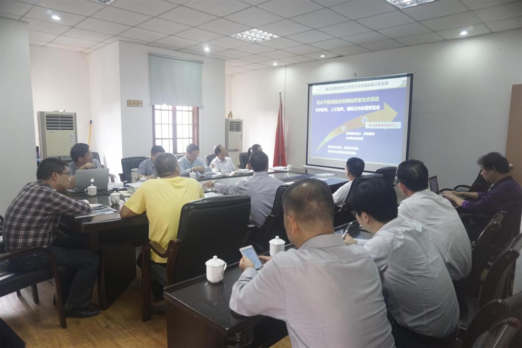 当日下午,基地工作组抵达云霄县政府,与云霄县领导班子共同召开基地工作推进协调会。此次会议是云霄县党政领导班子换届后,我校与云霄县新一届领导班子举行的第一次协调会,对于基地后续工作推进意义重大。云霄县委王金狮书记、张明东县长及保护区管理局林铭儒局长、相关职能部门及基地所在乡镇领导参加会议。会上,云霄县王金狮书记首先对基地工作组的到来表示欢迎,并表示云霄县委、县政府将继续支持基地相关建设工作开展。我校环境与生态学院李庆顺院长和沈小平书记也分别发言,简述基地建设的重要性和意义,对云霄县政府长期支持基地建设表示感谢,同时希望校地双方继续努力共同推进基地土地报批和后续征地工作。随后,环境与生态学院副院长、滨海湿地生态系统教育部重点实验室主任黄邦钦作PPT汇报,从基地建设的背景和意义、建设内容、建设进展和急需解决的问题等方面介绍基地相关情况和土地报批手续进展。
