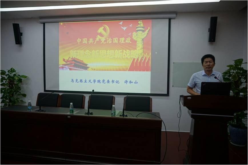 10月20日下午,马院党委书记许和山在囊萤楼216会议室作题为《中国共产党治国理政新理念新思想新战略》的专题党课。党课由党务秘书、团委书记蔡虎堂主持,行政后勤支部及全体学生支部参加党课学习。