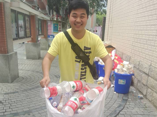 3月17日,在阳光心理督导部的卫检来临时,定点回收的纸箱子早已被形形色色的瓶子填满。青年志愿者协会成员与志愿者主动出击,在各个设点进行了收割。带着绿丝巾的志愿者们准备就绪,从映雪楼到芙蓉宿舍区、再到海韵公寓区的各栋宿舍楼进行了两个多小时的回收活动。其中,来自2011级男生各宿舍的数十上百的瓶子更是让志愿者们享受到了收获的喜悦。下午三点,清点完数以千计的瓶子,下午的回收活动在欢声笑语结束。