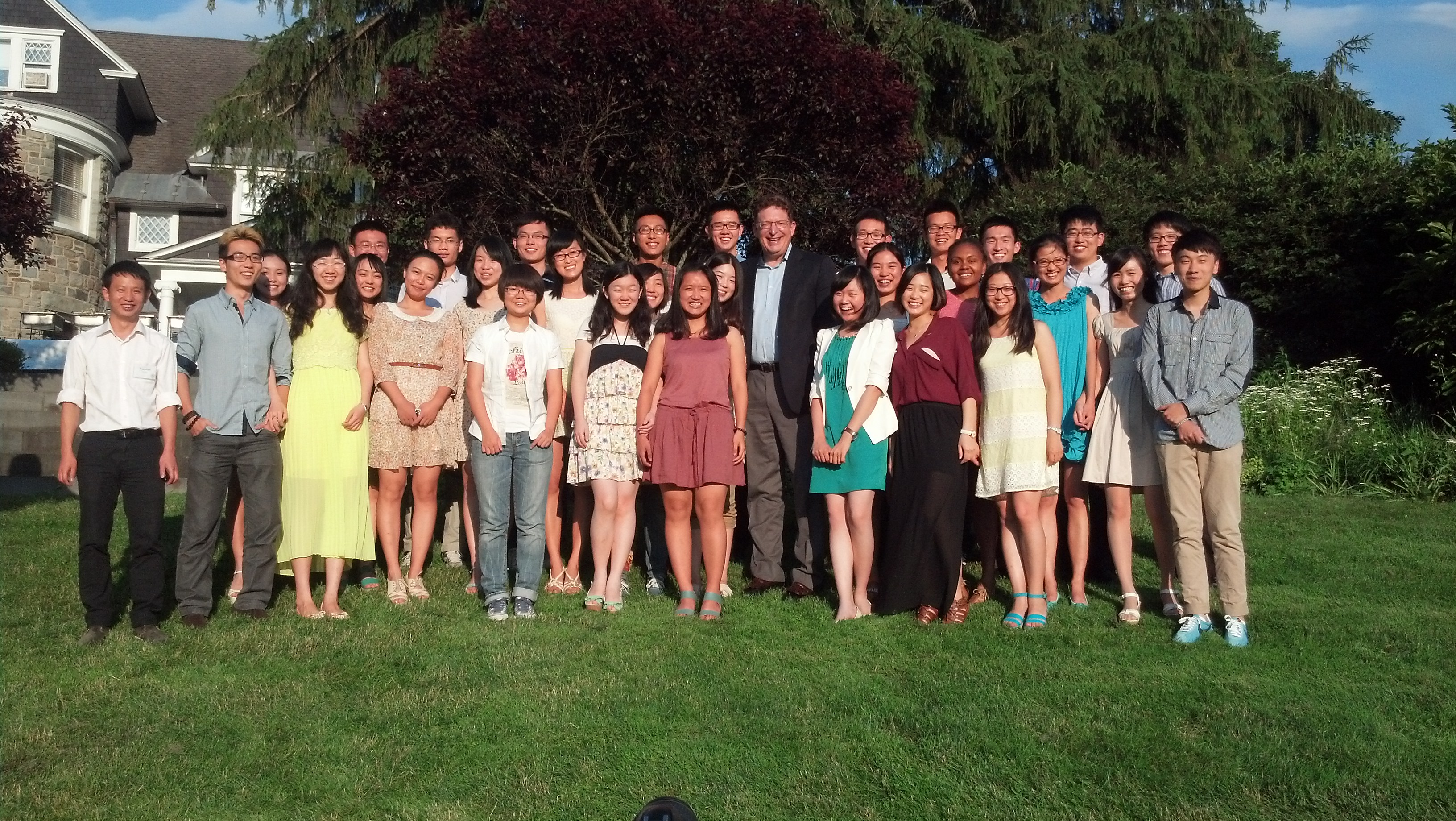 26日晚6点,厦门大学的同学们参加了一场特殊的安排——校长欢迎晚宴,柯盖德大学校长Jeffrey Herbst和大家共进了露天的晚宴,以最美式的方式欢迎大家的到来。晚宴简单而隆重,除了厦大的同学们,所有夏令营的老师和工作人员都加入其中,他们分坐到同学们之中,和同学们轻松交流。Herbst校长也加入同学们之中,和来自厦门大学的同学们围坐在一起,校长分享了自己的学习和工作经历,分享了自己的中国见闻,特别不久前访问厦门大学的点点滴滴,并就阅读、电影、音乐等话题和同学们进行了交流。