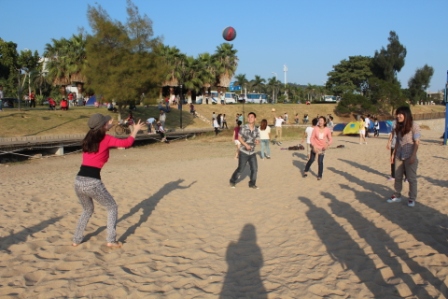 随后,文娱部副部长张勃欣同学带领大家玩起了令人轻松愉悦的集体游戏。首先是单脚跳游戏。研会成员每四人一组,脚搭着脚,互相比拼,看哪一组的平衡力最好。比赛中,有的组成员摔的摔,倒的倒,样子虽滑稽可笑,但都乐在其中。接着就是考验团队合作的沙滩排球游戏。四队成员两两组合,比赛接球。在这一比赛中,研会成员互相加油鼓劲,力争上游,最终,由研会主席曹京柱、团总支书记丁皓辰和体育部部长杨传智组成的队伍在游戏中获胜。