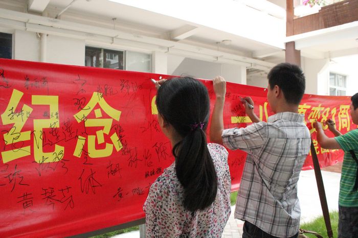 上午11时许,活动正式开始,老师和同学们纷纷在印有“勿忘国耻,理性爱国”的横幅上签名并留下自己想说的话。一位老师在横幅上写道:“对历史负责,警钟长鸣。”更多的同学写下“勿忘国耻”,“匹夫有责”等话语。在横幅的另一侧的地图版上,同学们贴上国旗,表明对近期日本公然制造钓鱼岛“购岛”闹剧的看法。现场的一名同学说:“钓鱼岛是中国的,牢记历史,我们才不会好了伤疤忘了痛。”