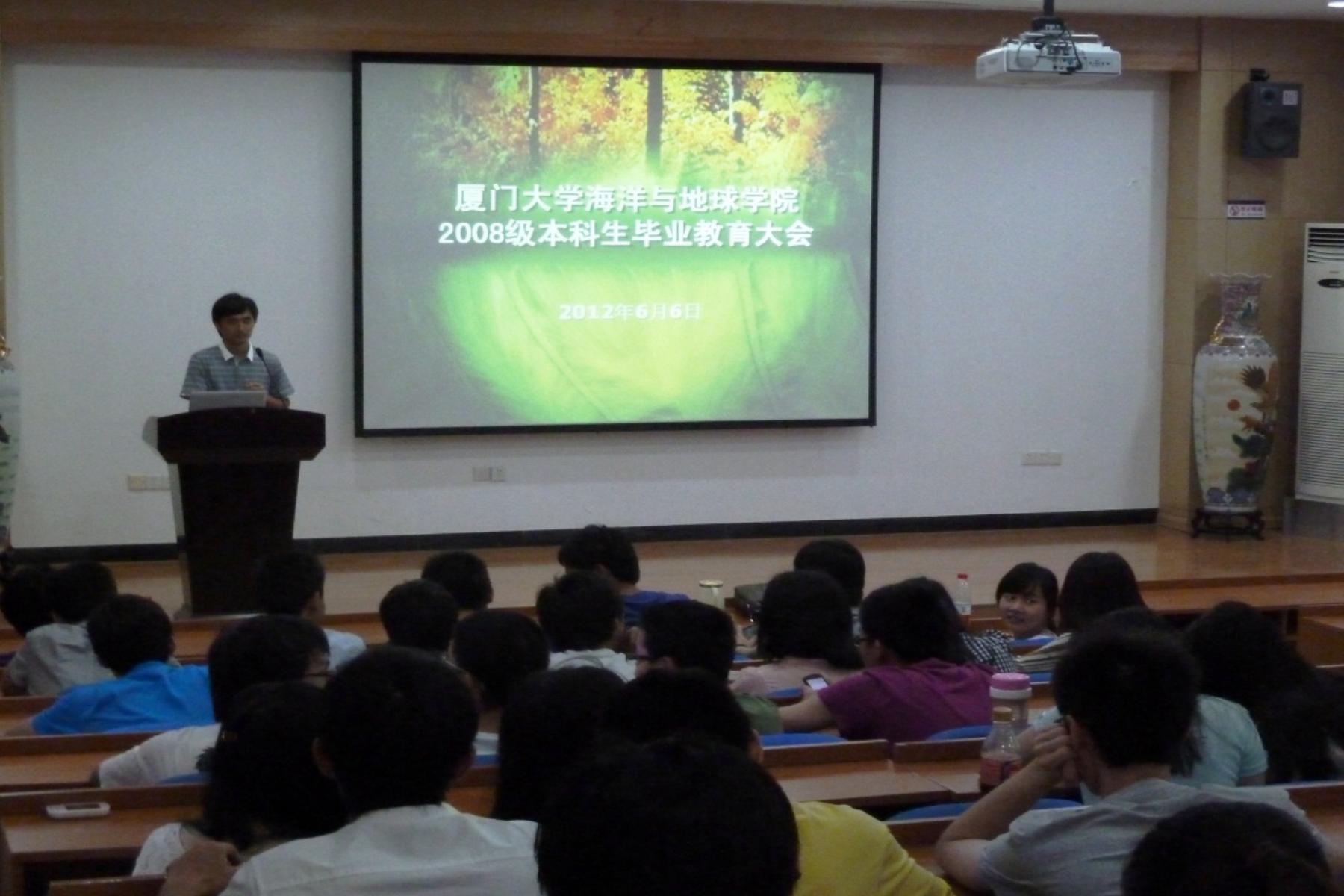 六月的厦大,凤凰花正火,却是惜别时。2012年6月6日,海洋与地球学院2008级本科生毕业教育大会在海洋楼A116隆重召开。本科生毕业班辅导员胡长占老师就毕业生的就业、离校等相关手续进行细致说明,并转达了学校及学院的毕业季活动安排。