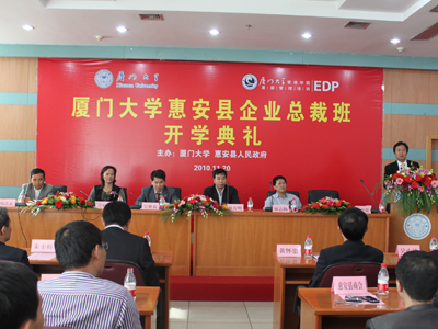 11月20日下午, 由厦门大学与惠安县人民政府联合主办的“惠安县企业总裁班”开班典礼在厦门大学颂恩楼220隆重举行。惠安的企业家精英们齐聚厦大管院EDP,共同探究在经济全球化的新时代,民营企业如何抓住经济发展新机遇,以迎接来自全球化的新挑战。