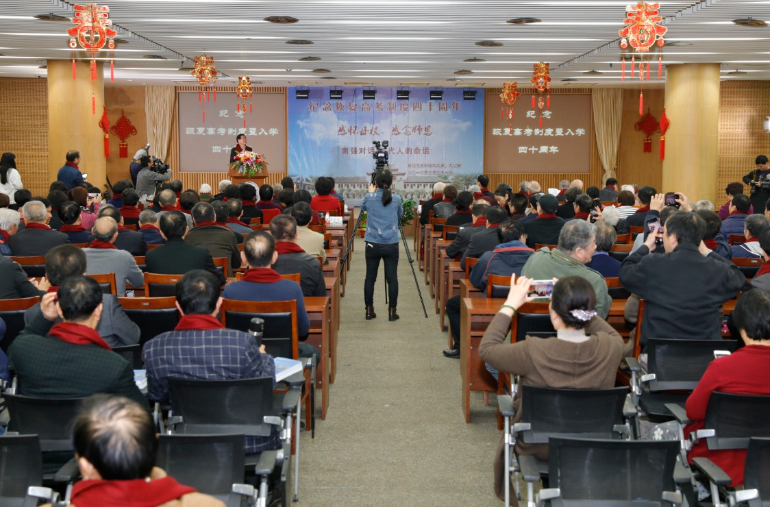 2月21日上午,纪念恢复高考及77、78级入学40年,一场具有特殊意义的纪念活动在科学艺术中心举行。130多名中文系77、78级校友重返母校与师长欢聚一堂,重温当年难忘的岁月。同时,作为恢复高考制度后首批进入大学的、来自海内外各地的中文系77、78级同学,以自己的亲身经历与切身感受,追忆40年前那场改变中国教育与整整一代人命运的高考,启动了一场“恢复高考制度与一代人的命运”的南强对话。校友总会理事长、原校长朱崇实在活动上致辞,副校长、校友总会副理事长詹心丽出席活动。