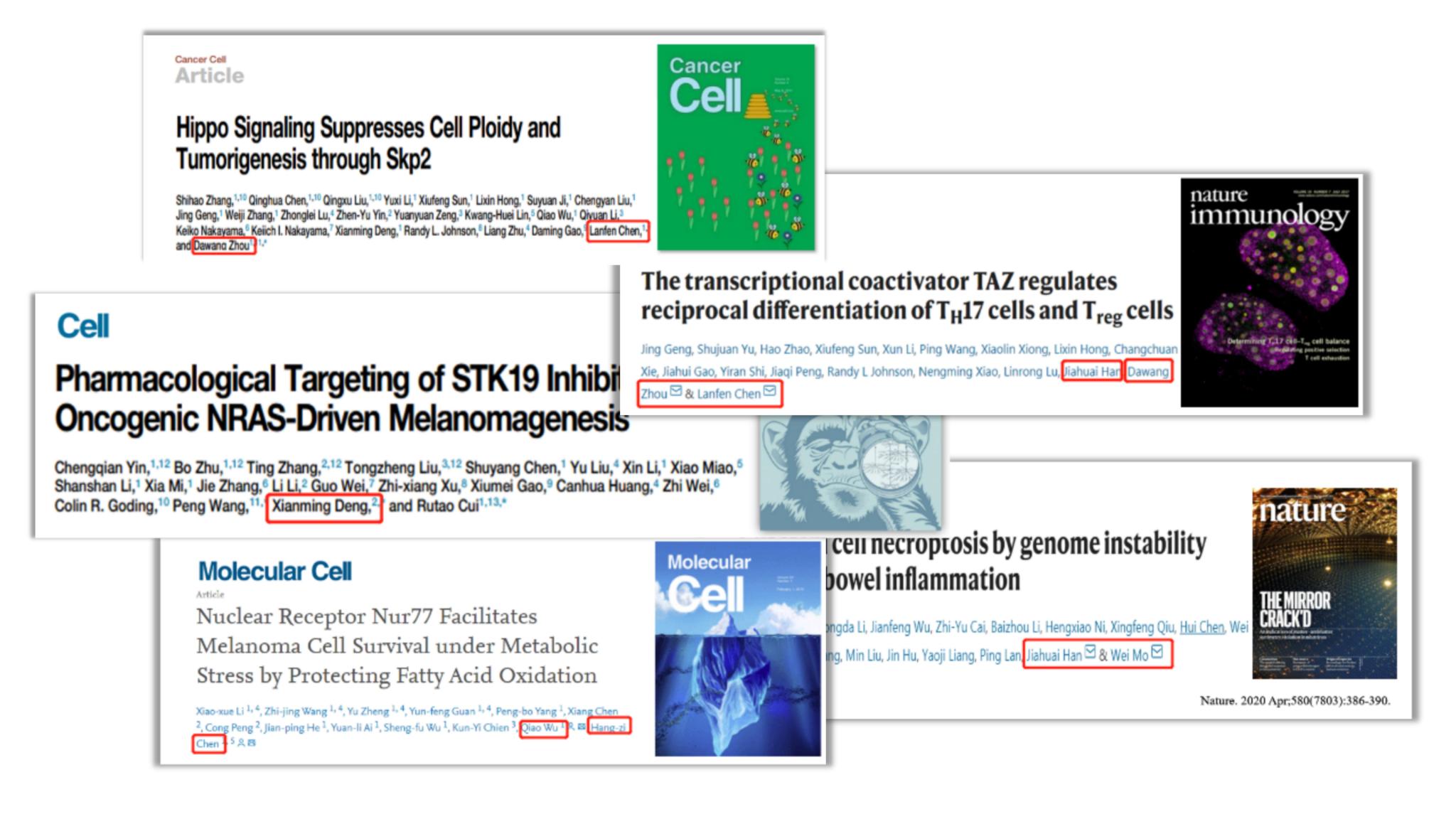 “我们国家为大学生创造无比优越的学习条件,给科研工作者也搭建好了施展的舞台,可以毫不夸张的说中国大学具备世界最好硬件条件,吸收国外先进的科学知识与理念,回国发展,造福祖国人民才能不负众望,千万不能忘了我们的中国梦。” 在日常的工作生活中,周大旺常常以亲身经历引导学生。团队成员潜精研思、砥砺奋进,扎扎实实把科研工作、论文研究书写在祖国大地上,实现科研成果转化落地生根,始终为服务人类生命健康而矢志奋斗。团队始终瞄准科学研究最前沿,聚焦领域核心科学问题,在机体免疫反应、肿瘤发生发展及靶向药物开发等取得丰硕成果。近五年来,团队成员或合作或独立以通讯作者身份发表研究性论文100余篇,其中正刊2篇(1篇NATURE、1篇CELL),子刊25篇,影响因子≥10的论文30余篇。筹划建立了厦门大学生物医学仪器共享平台,成功打破不同学院甚至不同学科之间的壁垒,实现了学部内各学院仪器的整合和统一管理。