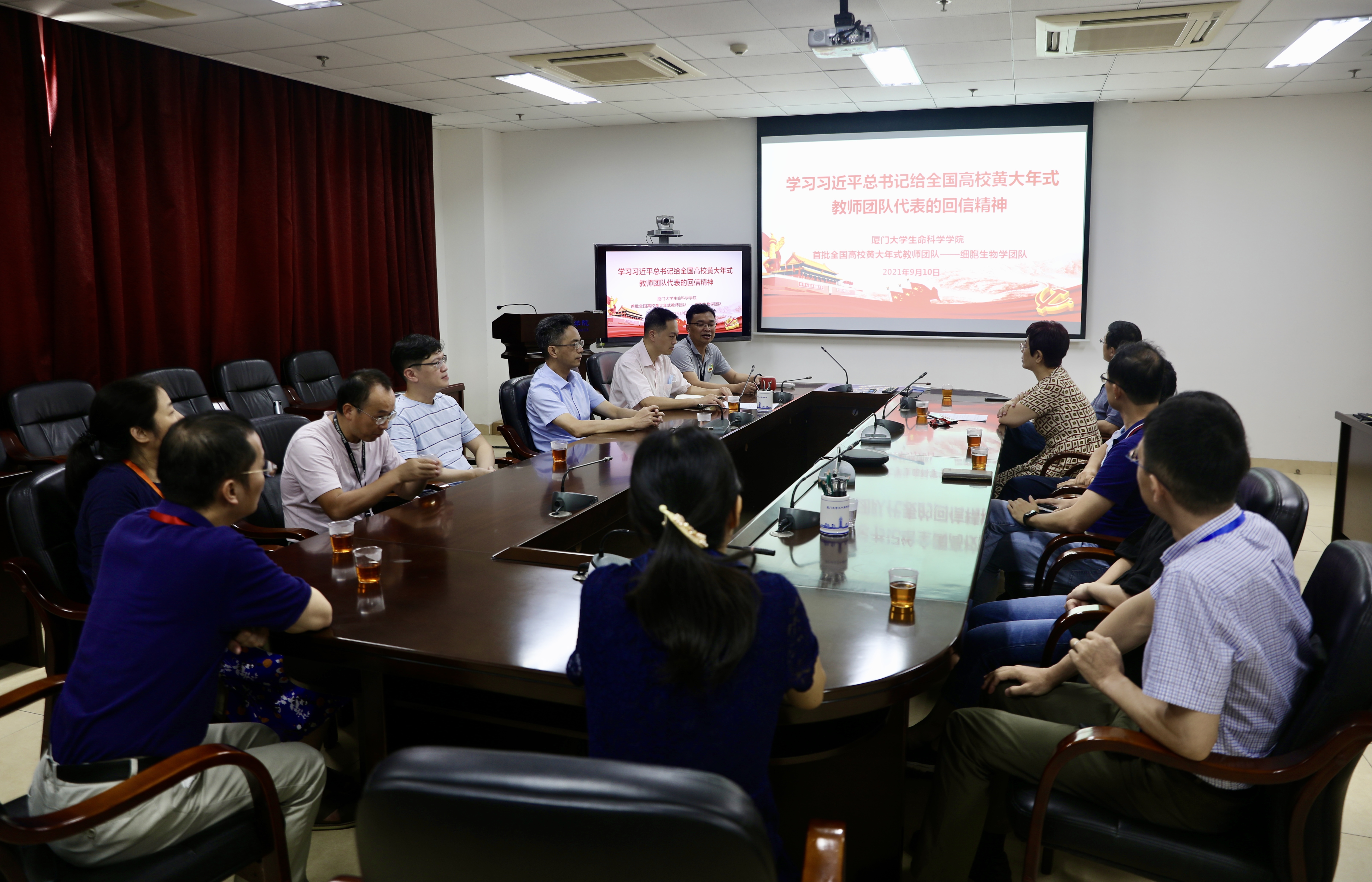 在第三十七个教师节来临之际,中共中央总书记、国家主席、中央军委主席习近平9月8日给全国高校黄大年式教师团队代表回信,对他们寄予殷切期望,并向全国广大教师致以节日的祝贺和诚挚的祝福。2017年年底,教育部公布了首批“全国高校黄大年式教师团队”入选名单,厦门大学细胞生物学教师团队成为全国201个获选团队之一。9月10日教师节当天,厦门大学细胞生物学教师团队召开专题学习会,第一时间学习了习近平总书记给全国高校黄大年式教师团队代表的回信精神。