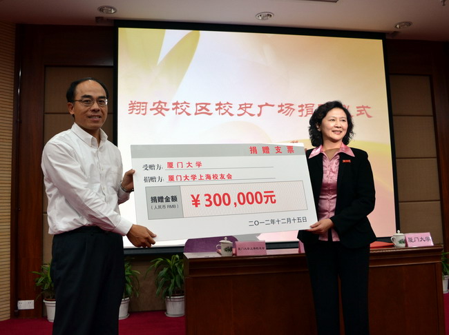12月15日,我校上海校友会部分校友在校友会高级顾问万建华、会长黄辉的率领下返校。在校期间,上海校友会举行了一系列活动,包括向母校捐赠人民币30万元用于翔安校区校史广场的建设,颁发2012年度厦门大学上海校友会奖学金、德邦物流奖学金,与学校签约,今后每年为母校毕业生提供100个左右的实习岗位等。万建华、黄辉、王炜、于小央、杨翊杰等返校校友还与在校学子分享了自己的学习、工作、生活的感悟。