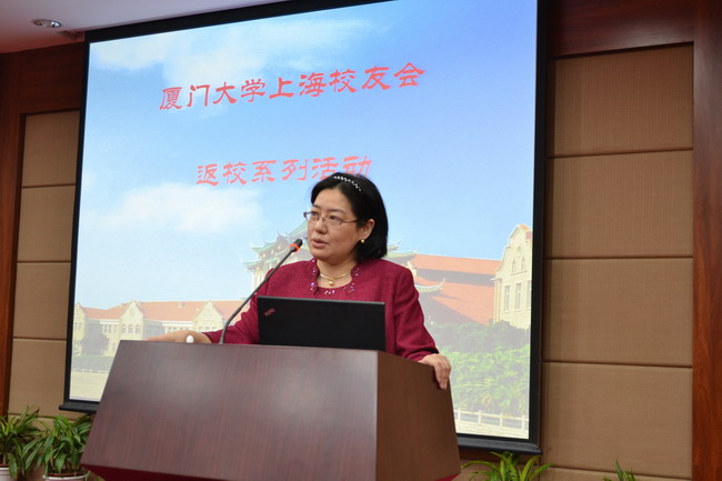 副校长詹心丽出席了活动,代表学校热烈欢迎上海校友会各位返校校友,感谢校友会对母校的回馈,祝福上海校友会和各位校友未来更好。她表示,校友是厦门大学的宝贵财富和最可依赖的力量,学校的发展与广大校友的关心支持密不可分。上海校友会自1984年成立以来,一直从智力、财力和人力上不断回馈母校,帮助着母校的招生、育人和就业等各项工作的开展,这不仅是经济上的帮助,而且是一份爱心的传递和校友文化的传承,希望在校同学牢记学长们的帮助关怀,自强自立,奋发有为,将来以更大的爱心回馈社会。