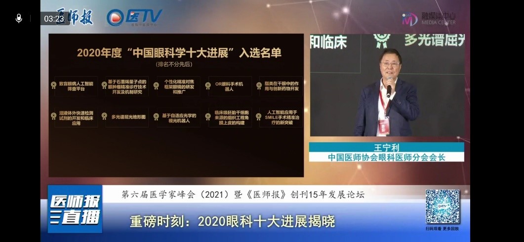 1月10日,在北京举行的第六届医学家峰会暨《医师报》创刊15年发展论坛上,中国医师协会眼科医师分会会长王宁利教授、中国医师协会眼科医师分会总干事刘武教授共同揭晓了2020年度“中国眼科学十大进展”。厦门大学眼科研究所有两项研究入选,分别是刘祖国教授团队完成的“脂类在干眼中的作用与创新药物开发”和李炜教授团队完成的“临床级胚胎干细胞来源的组织工程角膜上皮的构建”。