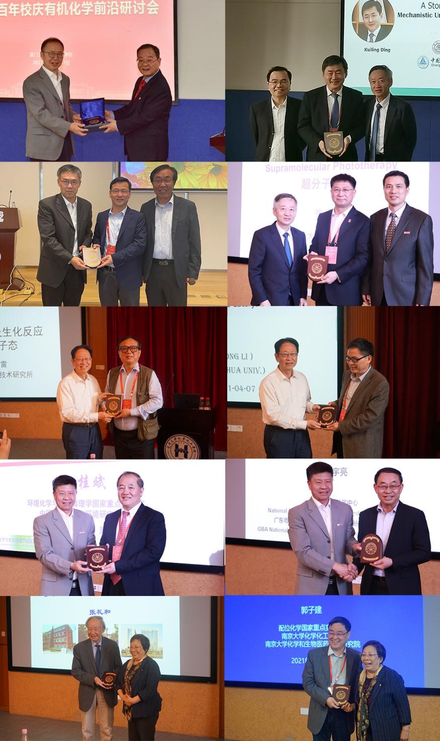 从学科规划到前沿研究,从理论方法到产业转化,十位院士研究领域涵盖无机化学、有机化学、分析科学、理论计算化学、高分子科学、化学生物学以及交叉学科方向,他们从不同角度与师生们分享了他们的最新科研成果和学科面临的机遇和挑战。周其林院士系统介绍了手性螺环铱金属配合物及其在酮不对称氢化中的应用研究,展示了不对称氢化方法在天然产物合成当中的应用;丁奎岭院士分享了手性芳香螺缩酮钯金属配合物的合成方法、反应机理及其在不对称催化领域的应用研究;李亚栋院士阐述了单原子催化剂的发展历程及普适性合成策略,重点介绍了单原子催化剂工业化进程;张东辉院士讲述了液态水第一性原理研究的难点和研究现状,同时介绍了精确势能面的神经网络拟合方法和透热势能面构造方法的发展;江雷院士在报告中指出低温电子超导及原子超流与体温离子/分子超流的关联性,他表示以设计超浸润催化界面体系为代表的量子化学工业将对未来的化学化工产生重大影响。肿瘤和癌症的治疗是医学和健康领域的热点,赵宇亮院士分享了纳米机器载药技术在治疗癌症方面所面临的挑战与机遇;张希院士介绍了基于主客体相互作用的“超分子化疗”新概念,致力于降低化疗药物对正常细胞的毒性。在多学科合作背景下,如何推动相关学科的发展,张礼和院士回顾了我国科学研究从早期“单打独斗”式的被动、低效研究模式到当前主动寻求多学科合作、高效解决科学问题的发展历程;郭子建教授向大家分享了金属化学生物学在生物医学领域的研究成果,指出学科交叉已成为科技创新的主要源泉,是这个时代不可替代的研究范式;江桂斌院士讲述了环境化学与国民健康的关系,从污染物识别与分子毒理等方面具体阐述了环境污染对人类健康的影响。
