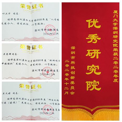 厦门大学深圳研究院作为学校在深圳的文化窗口、粤港澳大湾区校友沟通联系的桥梁、学校加强产学研结合、推进科技成果转化的试验田,自成立以来始终秉承母校“自强不息,止于至善”的校训。在科研工作上,研究院先后申请到了深圳市博士后创新实践基地并与深圳市人力资源和社会保障局签订联合培养博士后框架协议,成立了知识产权运营中心,并与韶关市政府、深圳坪山区政府等单位开展业务对接;在教育培训上,研究院以拓展视野、巩固业务、完善服务、规范管理、综合创新为总体目标,探索和完善出了一条适合研究院区位发展新的业务模式。截至2020年12月,厦大深研院累计申请专利153项,软件著作权5项,发表论文669篇,其中SCI收录475篇,EI收录109篇。