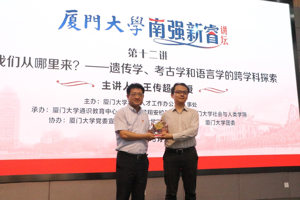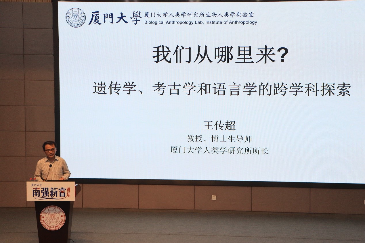 5月27日晚,南强新睿讲坛第十二讲主讲人,厦门大学社会与人类学院王传超教授在翔安校区德旺图书馆2号报告厅为师生带来题为《我们从哪里来?——遗传学、考古学和语言学的跨学科探索》讲坛,带领大家一同探索人类起源与演化这一世界级科学问题。