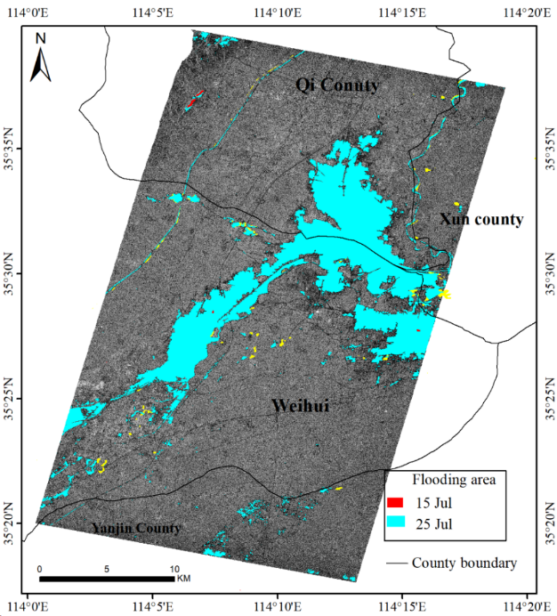 图1 “海丝一号”卫星河南新乡、鹤壁两市淹水灾情监测