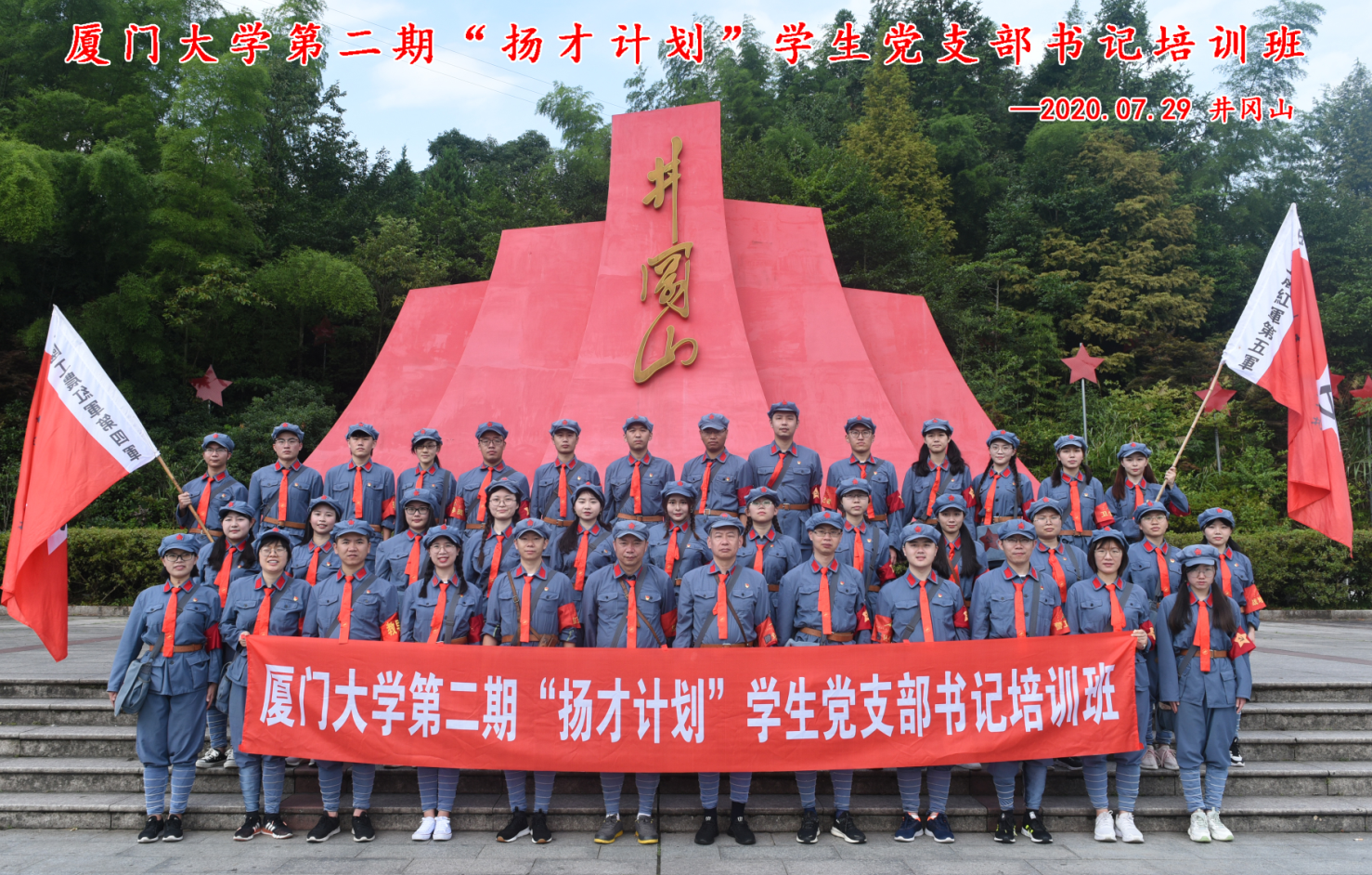 为贯彻落实新时代党的组织路线,进一步增强学生党支部书记政治素质和履职能力,充分发挥“头雁效应”,示范引领学生党支部组织力提升,7月26日至30日,校党委组织部/党的建设工作办公室组织第二期“扬才计划”学生党支部书记培训班38名师生党员前往井冈山进行为期5天的集中培训。
