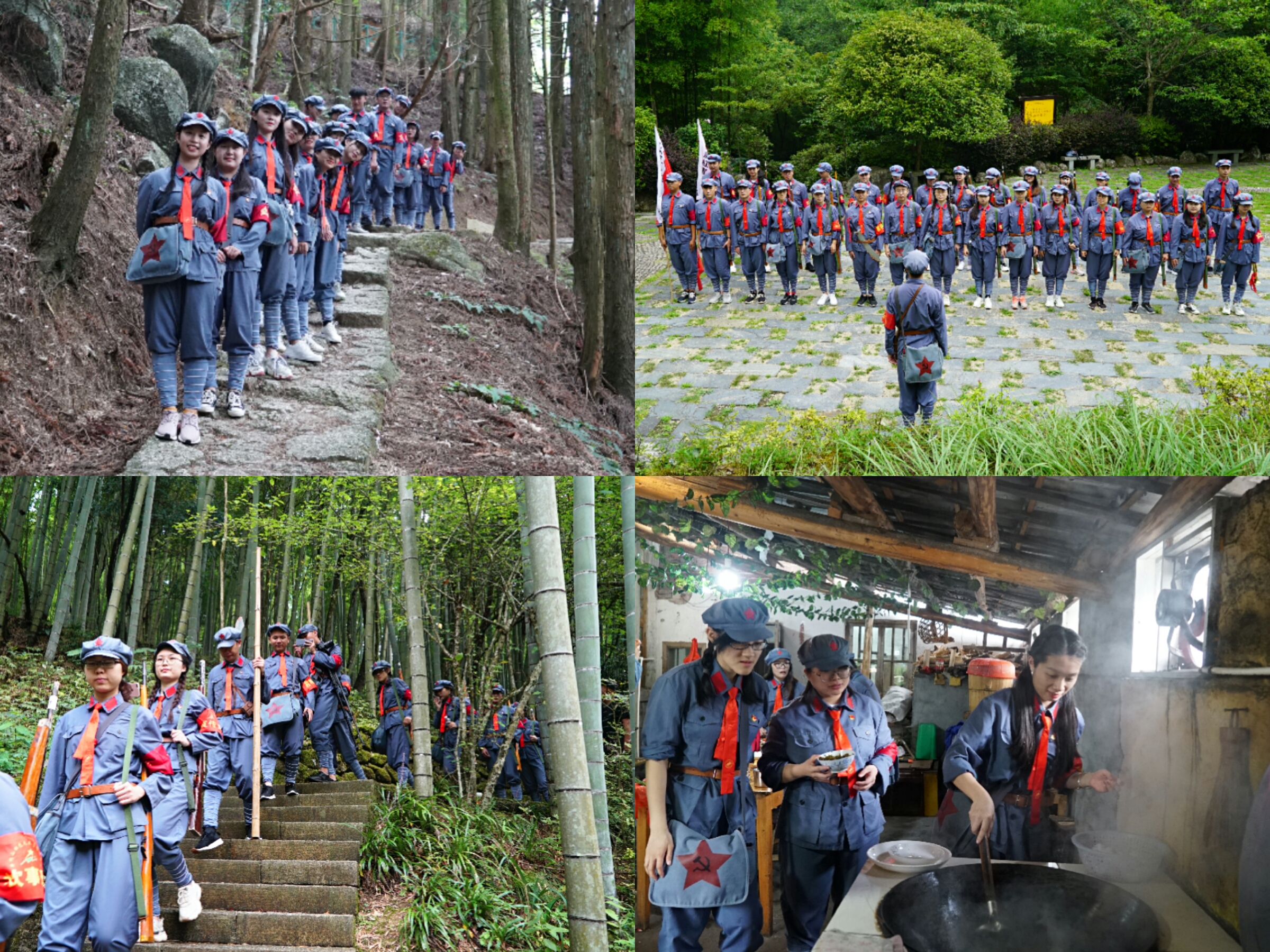 学员们穿上红军服、戴上红军帽,化身“红军战士”,追寻先辈足迹,感受红军战士不畏艰险、英勇顽强的革命英雄主义和革命乐观主义精神。行走在崎岖不平的挑粮小道上,学员们切身体会当年朱德军长和红军战士每天往返100余里、靠着肩挑背驮把30多万斤粮食运上井冈山、解决井冈山革命根据地给养问题的艰难困苦。在荆竹山,学员们开展了一天的户外素质拓展训练。通过队伍整训、为老乡做好事、自制“红军饭”、完成团队合作训练、重走红军路、红色文艺汇演等活动,学员们对红军和红军精神有了新认识。“红军是要在枪林弹雨中坚持作战,不抛弃、不放弃”“红军是要时刻为人民服务”“红军是要有‘心往一块想,劲往一处使’的团结和屡败屡战、愈挫愈勇的坚定”“红军还要有能苦中作乐和坚信革命胜利的乐观主义精神”……训练结束后,学员们畅所欲言、分享收获,对红军战士的崇敬之情溢于言表。