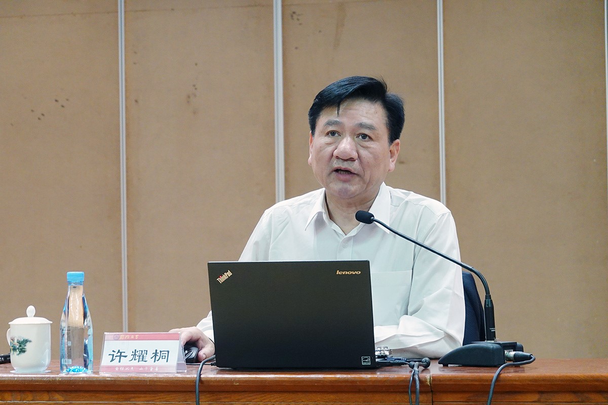 11月5日下午,校党委举行理论中心组学习会,邀请中共中央党校(国家行政学院)一级教授许耀桐作《开创新时代的宏伟篇章——《习近平谈治国理政》第三卷导读》专题辅导报告。校党委常委、宣传部部长、教师工作部部长徐进功主持学习会。