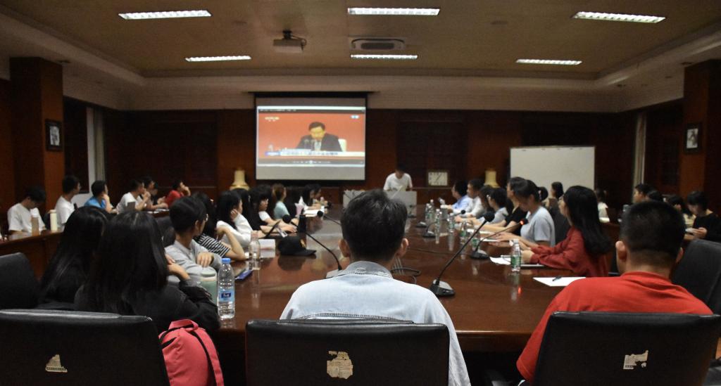 11月6日,公共事务学院师生党支部在成智一301会议室联合开展党的十九届五中全会精神学习活动,活动由2020级硕士生党支部书记马菁主持。