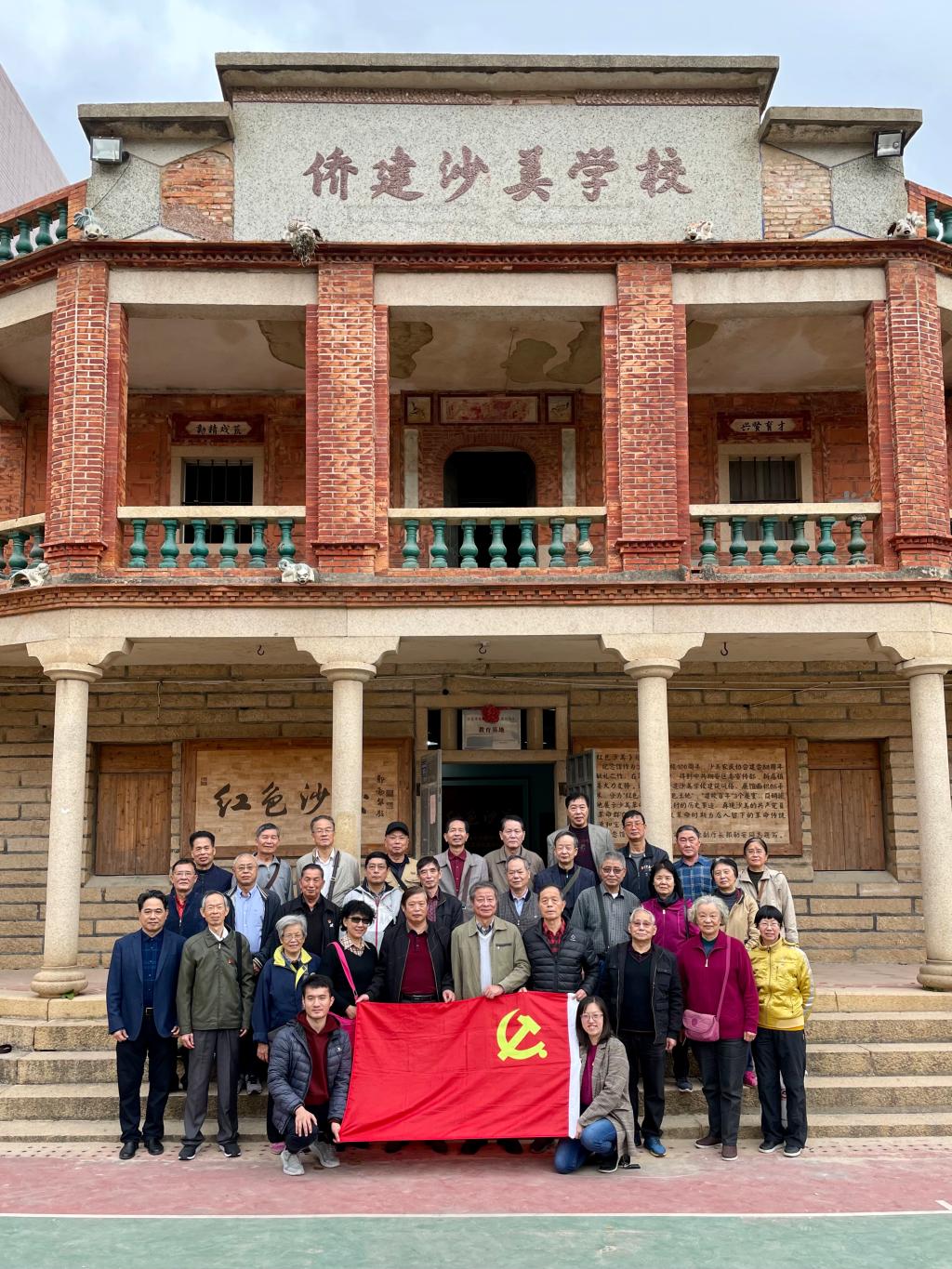 第三站是本次现场教学活动的终点站——“红色沙美”纪念馆。1927年2月,中共党员彭友圃、彭再添等在沙美村创办了沙美村农民协会,宣传革命思想,打击土豪劣绅,在大革命时期掀起轰轰烈烈的农民运动,发动农民积极开展反帝、反封建、反剥削的斗争。2014年10月25日,沙美社区利用侨建沙美学校旧址创办了“红色沙美”纪念馆,以此作为沙美学校建校100周年暨沙美农民协会建会88周年的献礼之作。在工作人员的引导下,大家参观了纪念馆内的 “红色足迹”、“红色土地”、“建校百年”三个部分,了解了沙美村的革命历史,以及往昔峥嵘岁月留下的不朽革命精神。