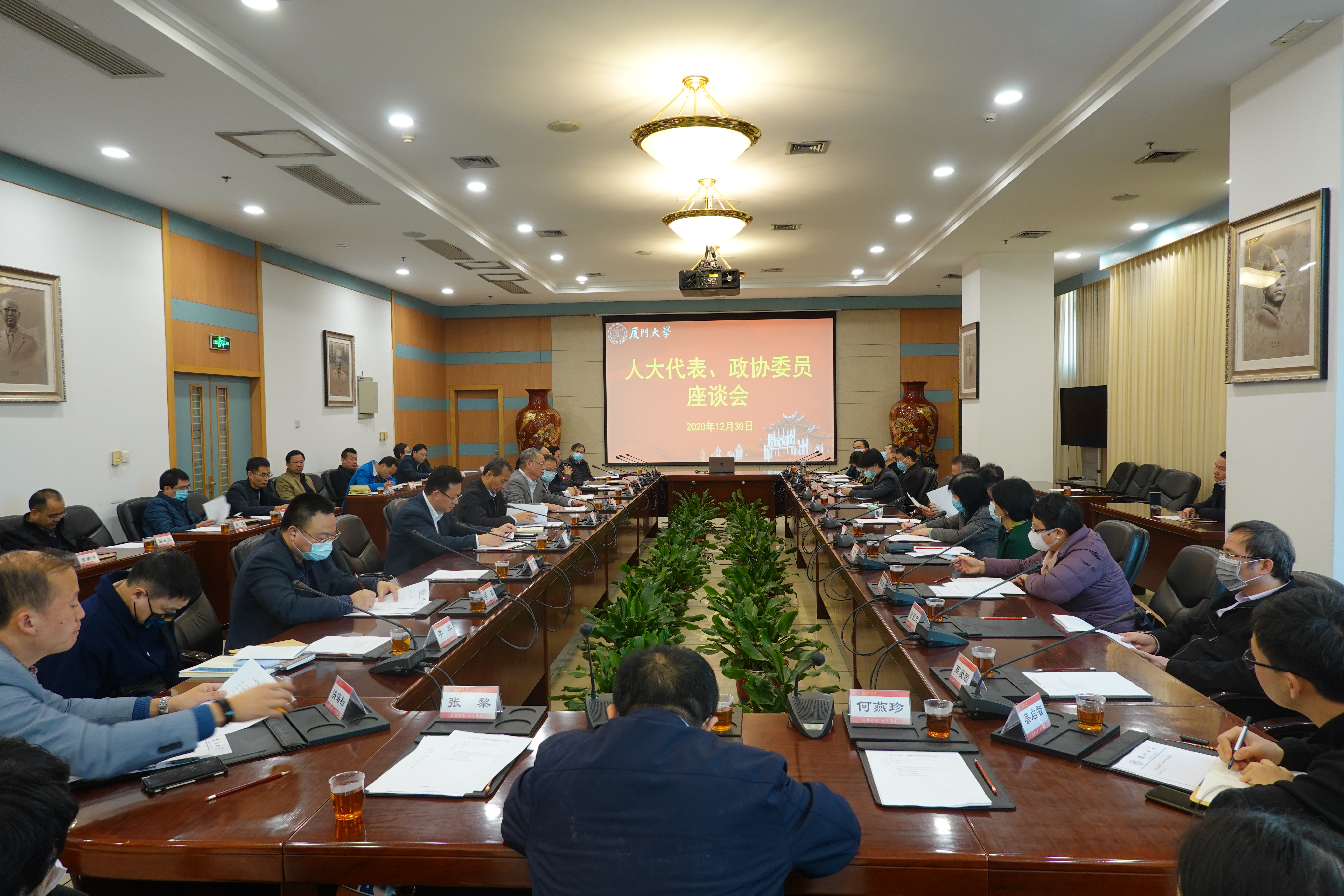 全国政协委员、化学化工学院郑兰荪院士,福建省政协常委、海洋与地球学院焦念志院士,全国人大代表、经济学院潘越教授,福建省人大代表、材料学院程璇教授,厦门市人大常委会委员、法学院院长宋方青教授,福建省政协常委、环境与生态学院薛雄志教授,福建省政协委员、信息学院廖明宏教授,厦门市政协委员、海洋与地球学院高爱国教授,思明区政协委员、科技处协作交流科蔡启智科长等代表、委员分别发言交流履职实践和经验、介绍正在准备提交的提案内容、就学校改革发展提出意见建议。大家表示,将认真履行职责,坚持建言资政和凝聚共识双向发力,努力发出厦大声音、展现厦大作为。