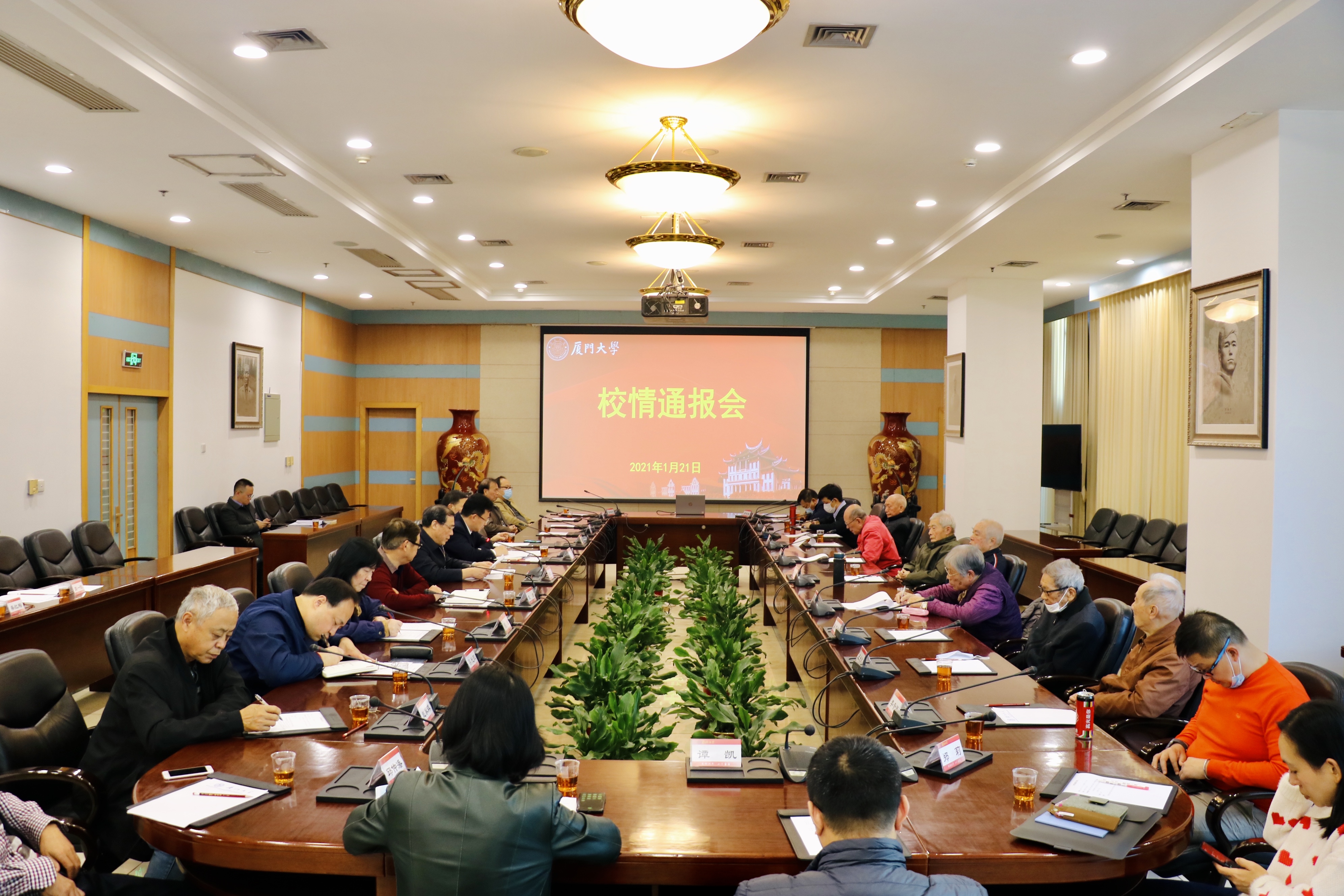 1月21日下午,厦门大学2020年校情通报会在颂恩楼215会议室,学校离休干部、退休教职工代表、各民主党派、统战团体负责人以及无党派人士代表参加会议。校党委常委、组织部部长、统战部部长孙理主持会议。