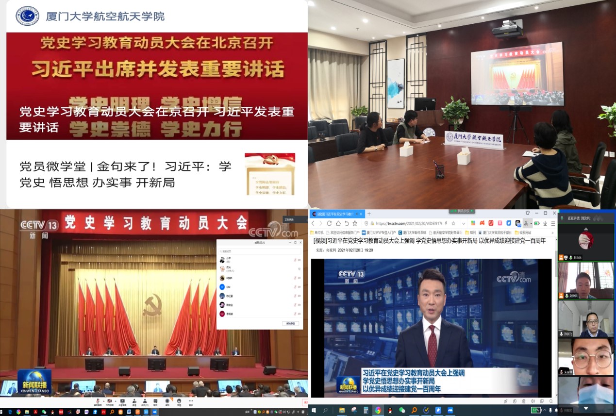 2月20日,党史学习教育动员大会在北京召开,中共中央总书记、国家主席、中央军委主席习近平出席会议并发表重要讲话。航空航天学院党委迅速掀起学习宣传热潮,运用新媒体平台、学习强国、党支部政治理论学习等渠道,组织师生党员认真学习领会习近平总书记重要讲话精神,在全院营造“学史明理、学史增信、学史崇德、学史力行”,“学党史、悟思想、办实事、开新局”的浓厚氛围。