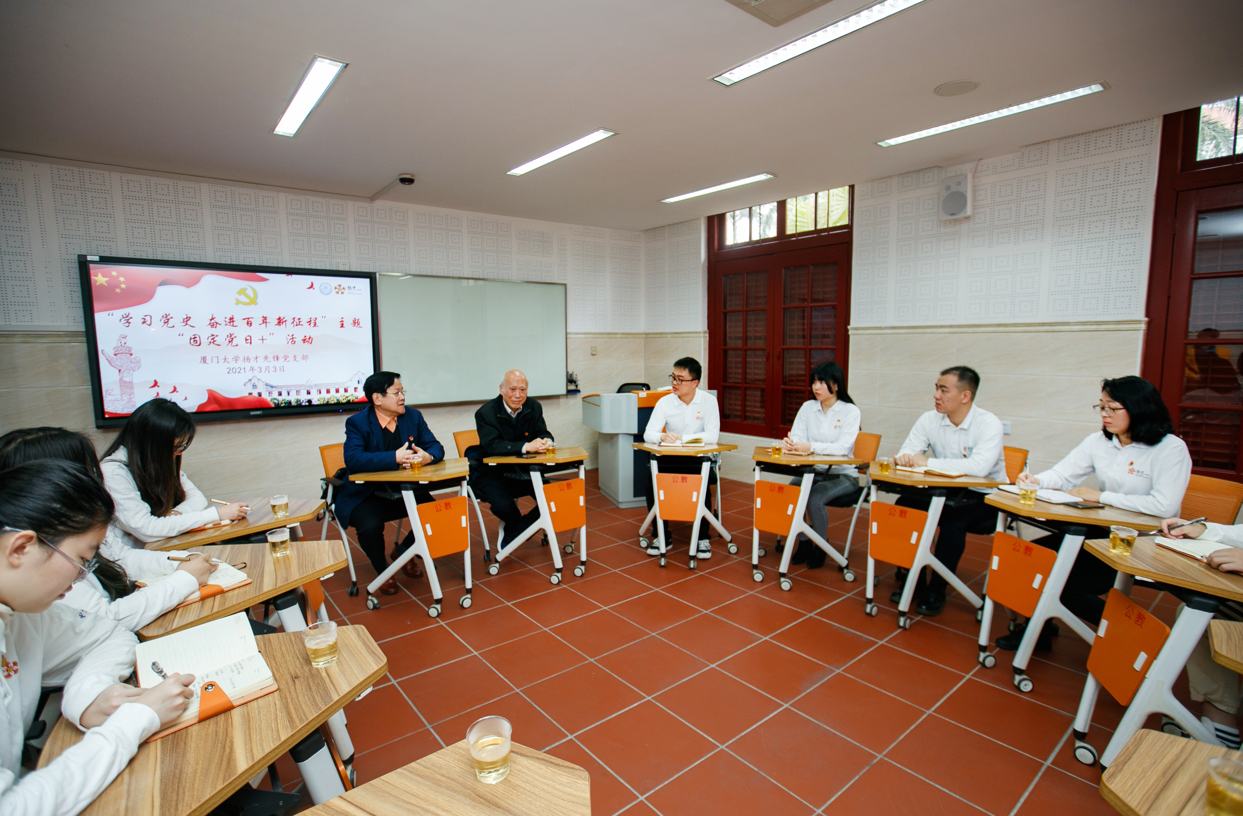 3月3日,以“学习党史 奋进百年新征程”为主题,厦门大学扬才先锋党支部举办“扬才沙龙”活动,由老党员、老教授颜章炮、黄福才和“扬才班”师生们再次回忆厦门大学的红色历史。
