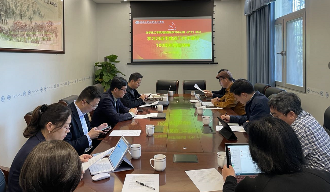 4月9日上午,化学化工学院召开党委理论学习中心组(扩大)学习,深入学习习近平总书记致厦门大学建校100周年贺信精神。学院党委理论学习中心组成员、党外领导干部、党支部书记代表参加会议,会议由学院党委书记宋毅主持。