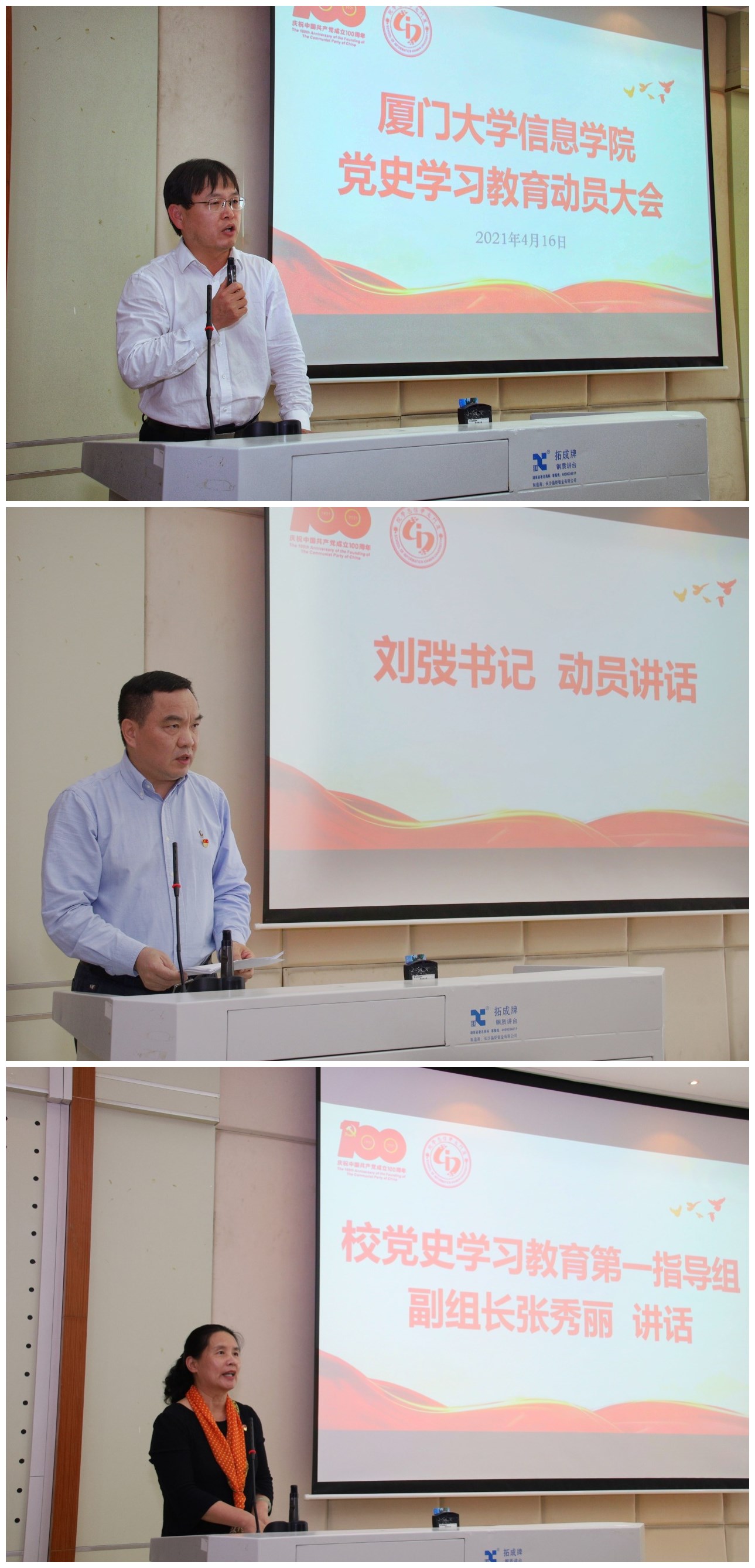 4月16日下午,厦门大学信息学院于海韵教学楼504报告厅召开党史学习教育动员大会,深入学习贯彻习近平总书记重要讲话精神,按照中央、教育部党组、福建省委以及校党委的要求,紧密结合学院改革发展实际,对学院开展党史学习教育进行动员部署。学院党委书记刘弢作动员讲话,校党史学习教育第一指导组副组长张秀丽到会指导,会议由学院党委副书记郑镇锋主持。