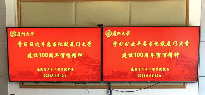 4月12日下午,建筑与土木工程学院党委理论学习中心组召开学习会,认真学习传达习近平总书记致厦门大学建校100周年贺信精神。会议由院党委书记、院长王绍森教授主持,学院党委理论学习中心组成员参加学习会。