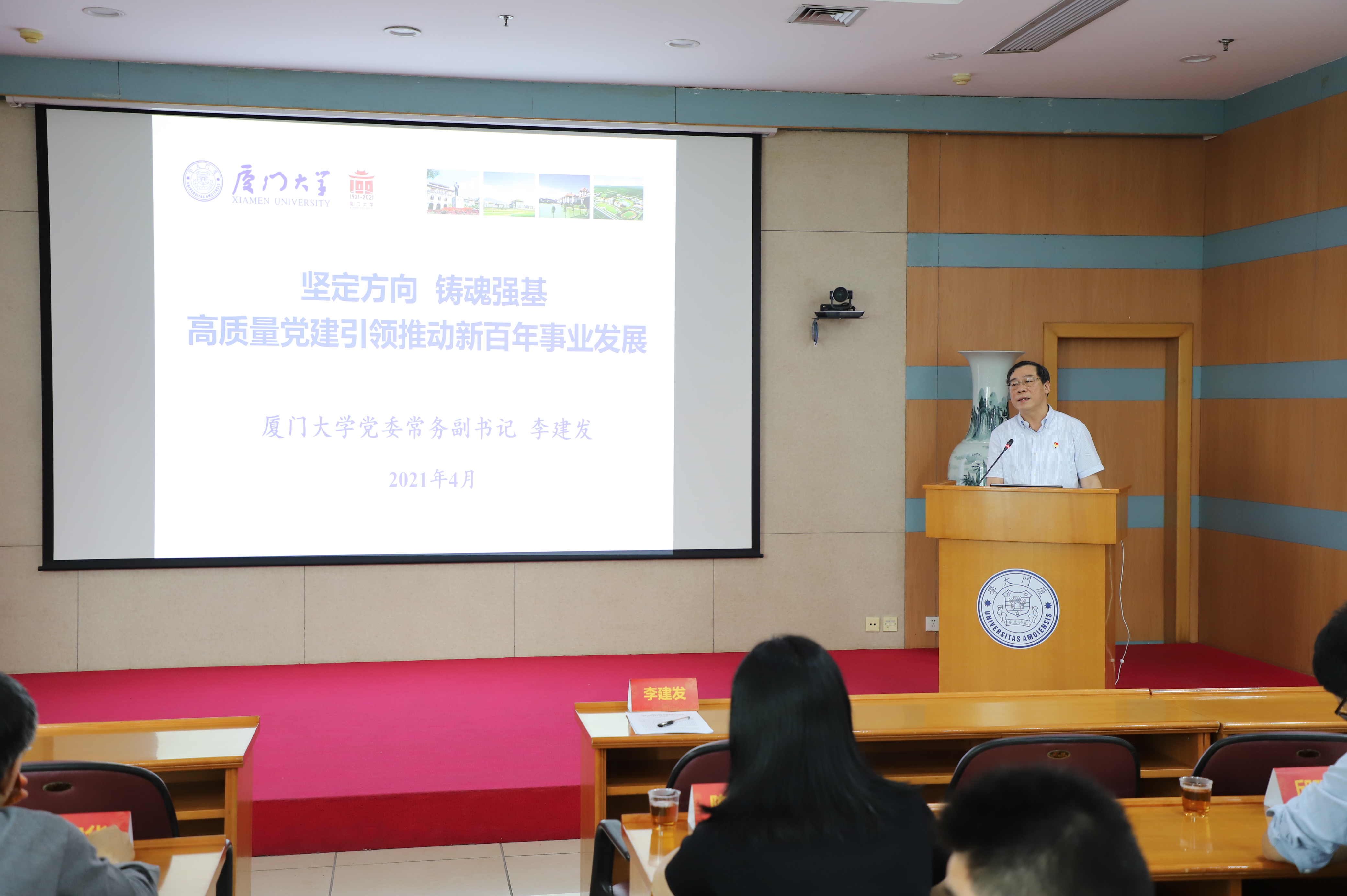 为深入学习贯彻习近平新时代中国特色社会主义思想和习近平总书记致厦门大学建校100周年的贺信精神,落实全面从严治党主体责任,扎实开展党史学习教育,进一步夯实基层党建基础,强化党建工作能力,持续提升基层党组织建设质量,以更加昂扬奋发有为的姿态迎接建党一百周年,4月23日上午,党委党校(第176期)党建工作能力强化班在颂恩楼220会议室开班。校党委常务副书记李建发应邀上专题党课。校党委副书记、纪委书记全海作开班动员。校党委党校副校长何丽新主持。