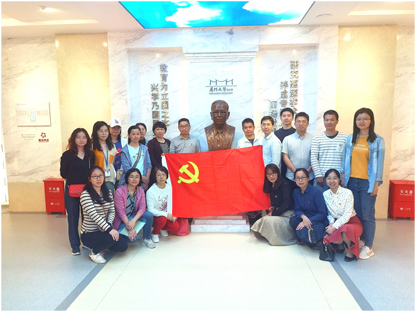 正值厦大人共襄百年盛举的校庆月,在新百年征程的起点,为扎实开展党史学习教育,深入学习习近平致厦门大学建校100周年贺信精神,围绕“弘扬嘉庚精神,奋进一流征程”主题,激励党员争当学史悟思的排头兵,从光辉历程中汲取奋进的力量,4月25日下午,化学化工学院国重室党支部、结构化学党支部、学报(自然版)党支部联合开展了“守正创新,共谱新篇”主题党日共建活动,组织党员参观了群贤楼陈嘉庚纪念馆、厦门大学百年校史展以及厦门大学化学学科百年文化展,并召开座谈会深入交流业务和党建工作经验。学报(哲社版)党支部党员共同参观并现场交流,化学化工学院党委副书记、院长谢兆雄教授应邀出席座谈会并讲授专题党课。