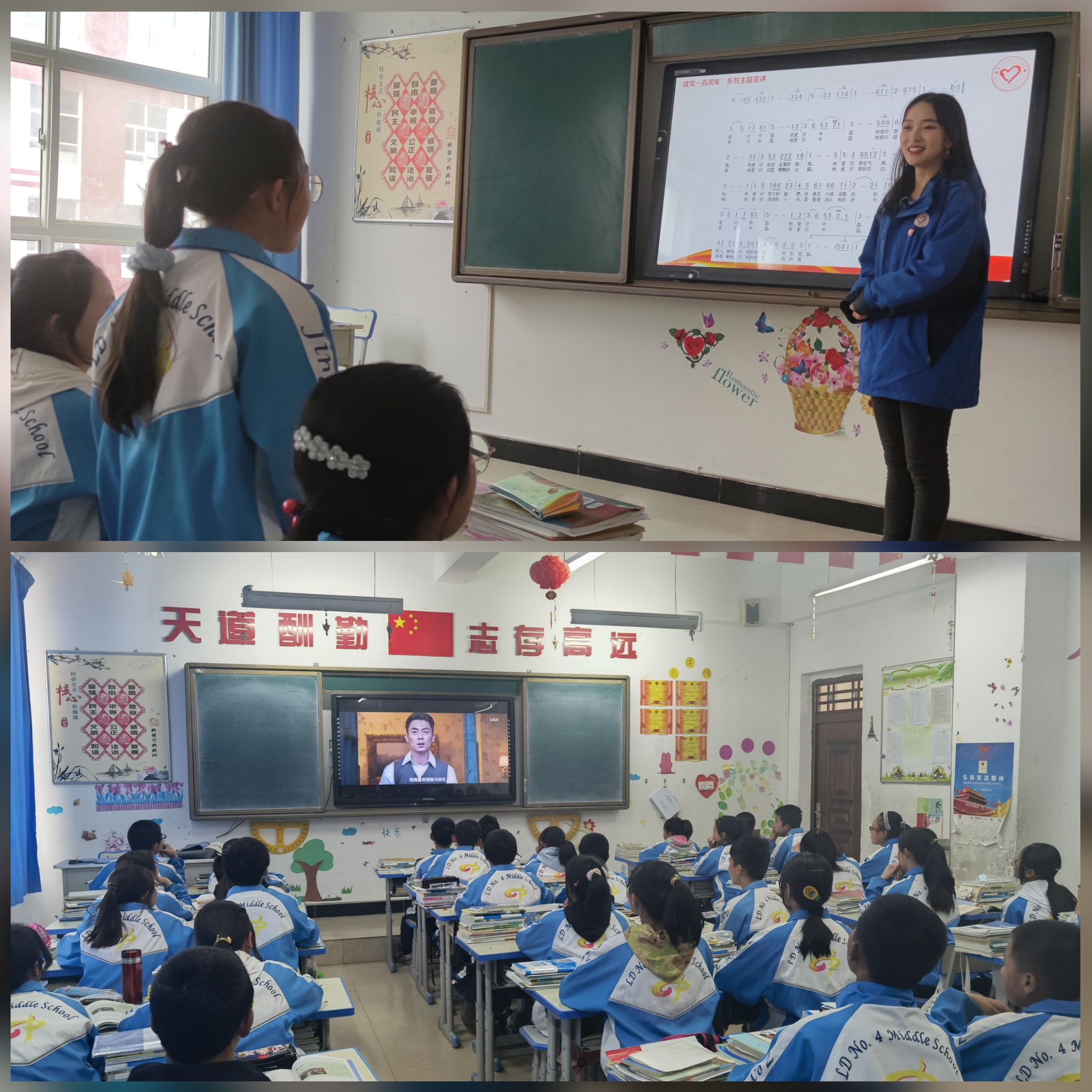 “五四运动是在什么背景下发生的?中国工农红军的部队番号是怎么产生的?中共一大的召开经历了怎样的曲折过程?”在宁夏隆德四中,支教队员们带领学生通过观看红色电影了解历史、找寻答案。在《建党伟业》《建军大业》等红色电影里,学生们直观感受到了“五四运动”中的家国情怀、“嘉兴红船”上的革命信仰和“南昌起义”中的斗争精神。“若要盼得呦红军来,满山开遍呦映山红”,在音乐团课上,支教队员们为学生们讲解了《映山红》《红梅赞》《黄河颂》《东方红》等经典力作,解读这些歌曲产生的历史背景,重现这些歌曲的精神感召力。党史与电影碰撞、团课与音乐融合、互动与感悟共振,带给了学生们全新的体验。“原来这些耳熟能详的红歌背后还蕴藏着这么多感人的故事,这样的团课太有意思了!”隆德四中八年八班的梁海龙同学激动地说。