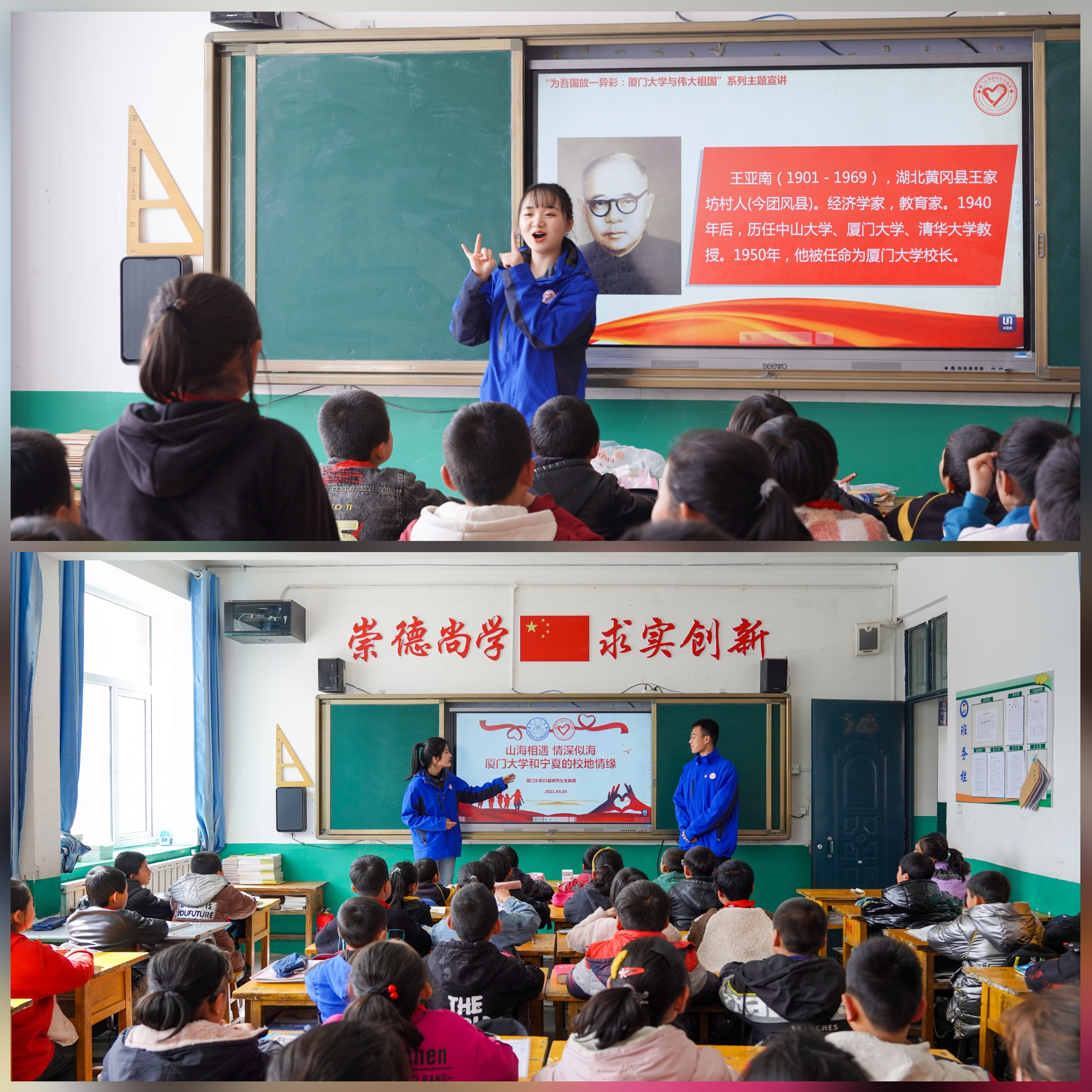 厦门大学具有光荣的革命传统,革命文化积淀深厚。厦大研究生支教团以献礼厦大百年华诞为契机,将党史中的厦大先锋人物搬上讲台,利用班团课组织开展“党史中的厦大人”“厦门大学与伟大祖国”主题宣讲活动。陈嘉庚、萨本栋、罗扬才、王亚南……一个个响亮的名字,一个个情节生动的经典故事,被研支团队员们以青少年听得懂、能理解、好接受的宣讲形式呈现在课堂上,有效激发起支教地学生的“味蕾”,让饱含浓浓党味的党史学习“营养大餐”既可口又易吸收。