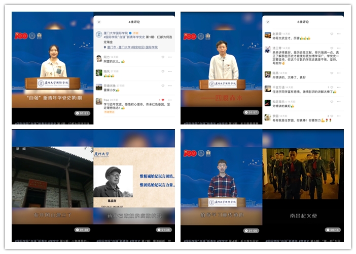 为庆祝中国共产党成立100周年,国际学院于4月1日起推出“自强”新青年学党史系列微党课,引导青年学生分组收集党史材料,走上讲台讲授红色故事,打造精品党史微视频。在备课、讲解、剪辑的过程中,党史知识悄然沁入心田,朋辈的精彩微党课,有效地激发了同学们的学习热情。目前,学院已推出7期微党课,以生动鲜活的小故事在全院广大学生中掀起党史学习热潮,持续推进党史学习教育深入人心,变“要我学”为“我要学”“我爱学”。