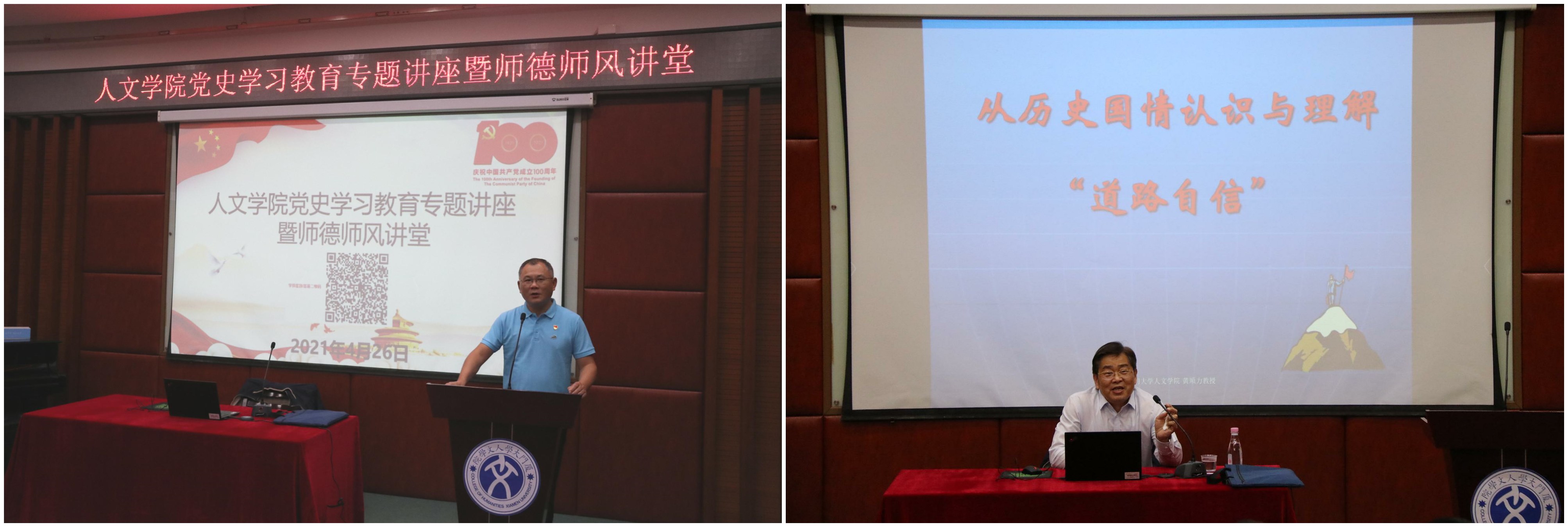 为扎实开展党史学习教育,加强学院教师思想政治和师德师风建设,4月26日下午,人文学院党史学习教育专题讲座暨师德师风讲堂在南光一101报告厅举办。讲座邀请人文学院历史系黄顺力教授作《从历史国情认识与理解“道路自信”》专题报告,由人文学院党委书记高忠华书记主持。
