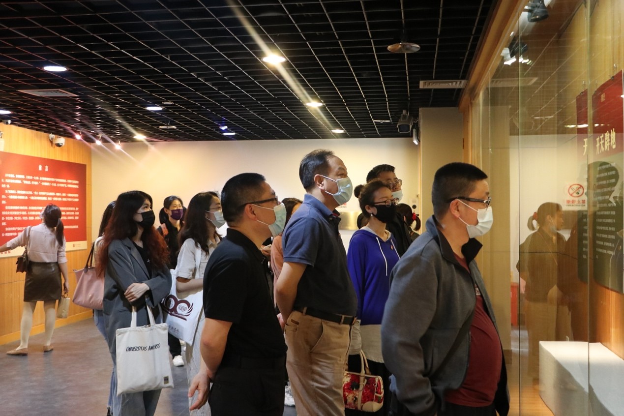 华侨博物院是由校主陈嘉庚先生于1956年倡办,1959年落成开放,是我院学生的一个重要实习实践基地。在讲解员的生动解说下,师生党员参观了“理想照耀中国——庆祝中国共产党成立100周年主题展”,在翔实的历史图文、展出文物中重温中国共产党走过的伟大革命历程,体悟百年党史上从红船精神到脱贫攻坚精神等三十余种组成的精神谱系。