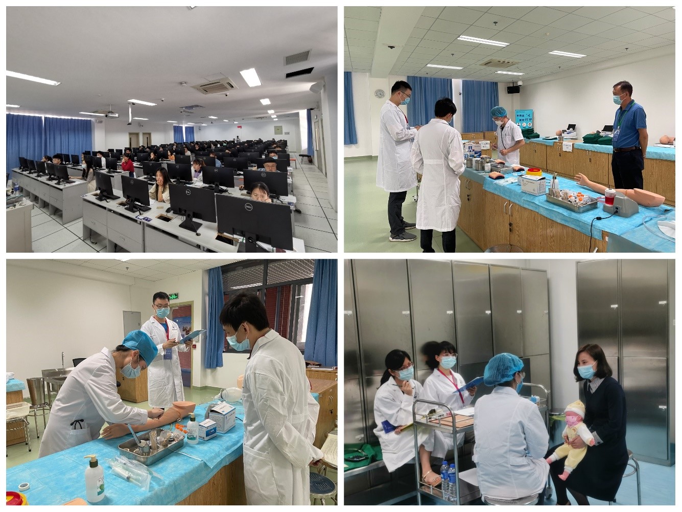 为做好水平测试工作,医学院从组织机构、制度建设、工作人员培训以及后勤保障等方面作了周密部署,成立了领导小组,下设考务组、技术保障组和后勤保障组,严格按照国家医学考试中心要求设计考试流程、布置考场、培训各类考试工作人员,确保考核工作公正、公平、规范、科学、有序。考试期间,基地负责人薛茂强副院长全面督导,考务人员严谨周到,考官严肃认真,标准化病人演技十足,考生细致用心,考场秩序井然,各环节考试顺利完成。