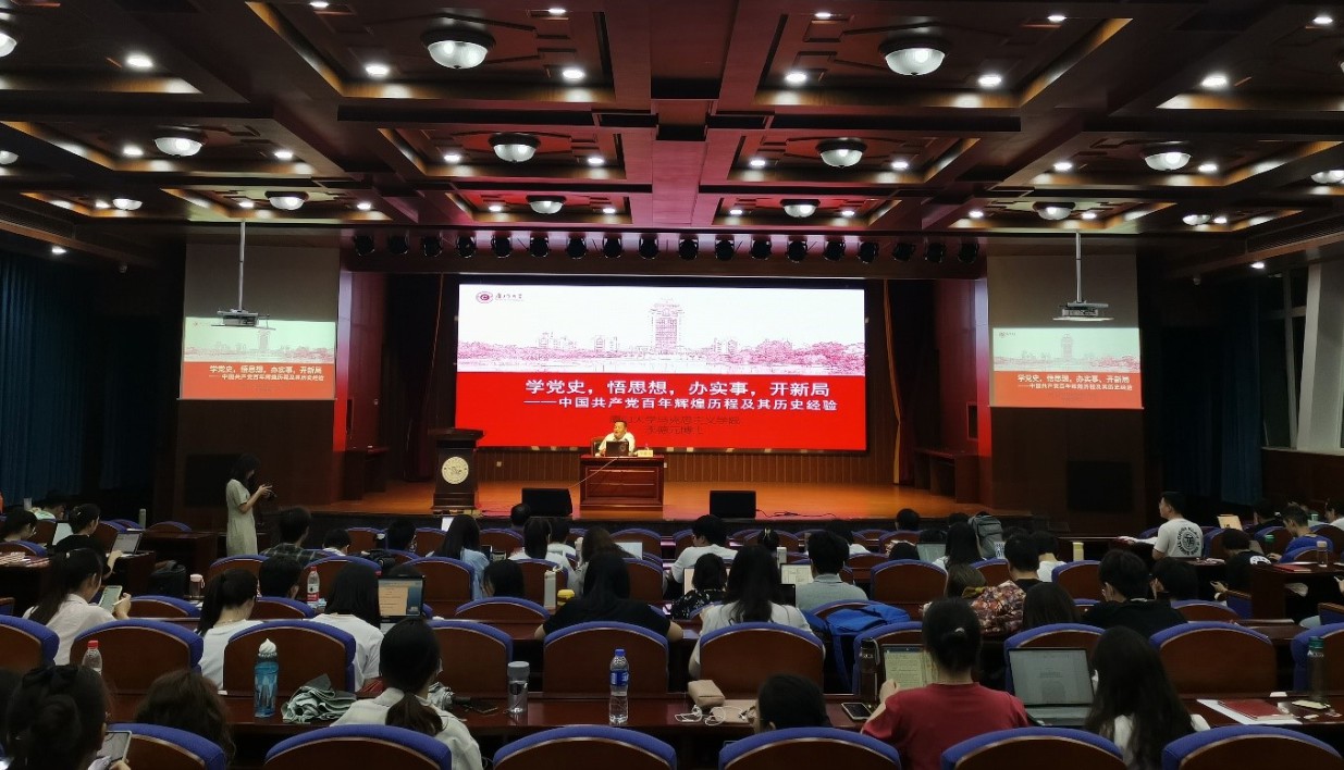 历史是最好的教科书,也是最好的营养剂。开展党史学习教育,从党的非凡历程中领会马克思主义是如何深刻改变中国、改变世界的,感悟马克思主义的真理力量和实践力量。5月10日19:00,法学院党规党纪研习社党支部开展“新民主主义革命时期”专题学习,邀请马克思主义学院李德元副教授做客“廌园理论课堂”,为全体研究生党员讲授专题党课。他以“中国共产党百年辉煌历程及其历史经验”为题,生动讲述了中国共产党百年来的辉煌历程和伟大历史贡献,详细剖析了中国共产党成立百年来的历史经验,勉励全体师生认真学习中共党史,做一个新时代忠诚、干净、担当的共产党员。李德元副教授的讲座内涵深刻、深入浅出,带领全体师生重温了我们党百年来的辉煌历程,同学们纷纷表示要继承和弘扬我们党的革命精神,牢记初心使命、坚持正确方向,从党的百年伟大奋斗历程中汲取继续前进的智慧和力量,以更加昂扬的精神状态和奋斗姿态奋进新征程,努力成为担当民族复兴大任的时代新人。
