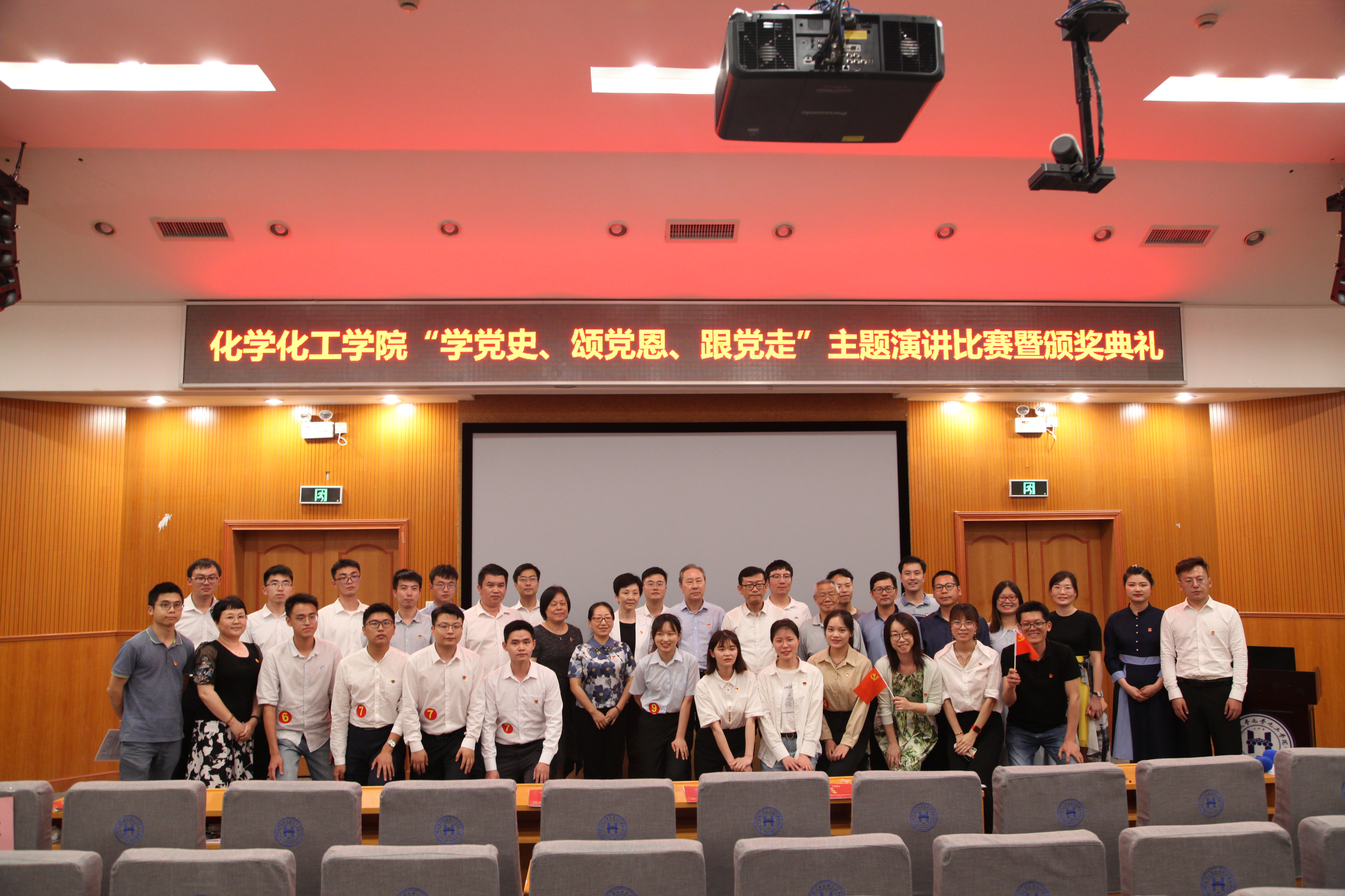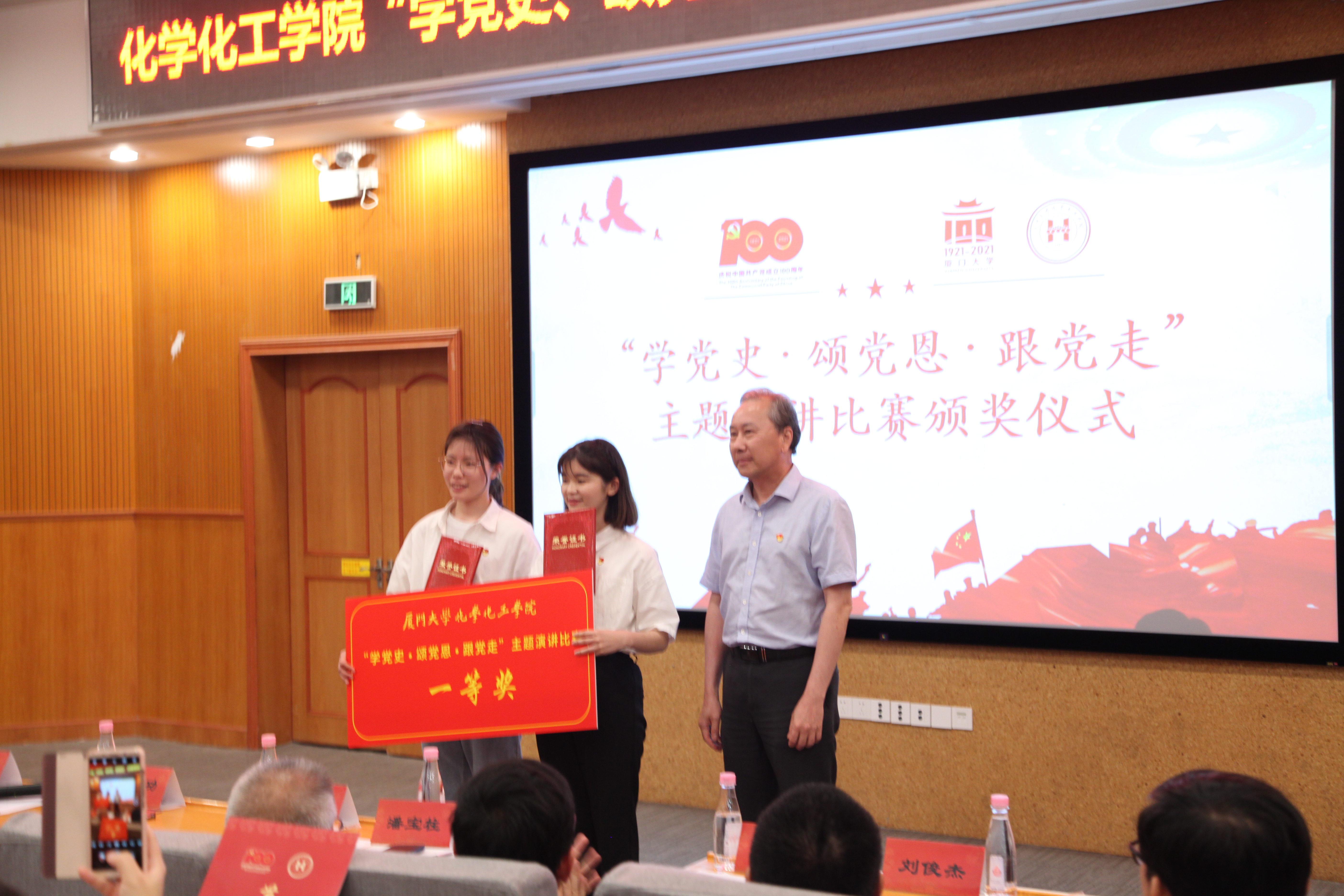 百年风云铸不朽,十秩薪火永相传。5月14日,厦门大学化学化工学院在化报厅举办“学党史﹒颂党恩﹒跟党走”主题演讲比赛,献礼中国共产党成立100周年。本次活动由中共厦门大学化学化工学院委员会主办,化学化工学院硕士研究生2020级第五党支部承办,化学化工学院研究生会协办。来自学院各学生党支部的17支队伍报名参加了演讲比赛,经过演讲稿筛选和初赛激烈的角逐,十组队伍脱颖而出、进入决赛。