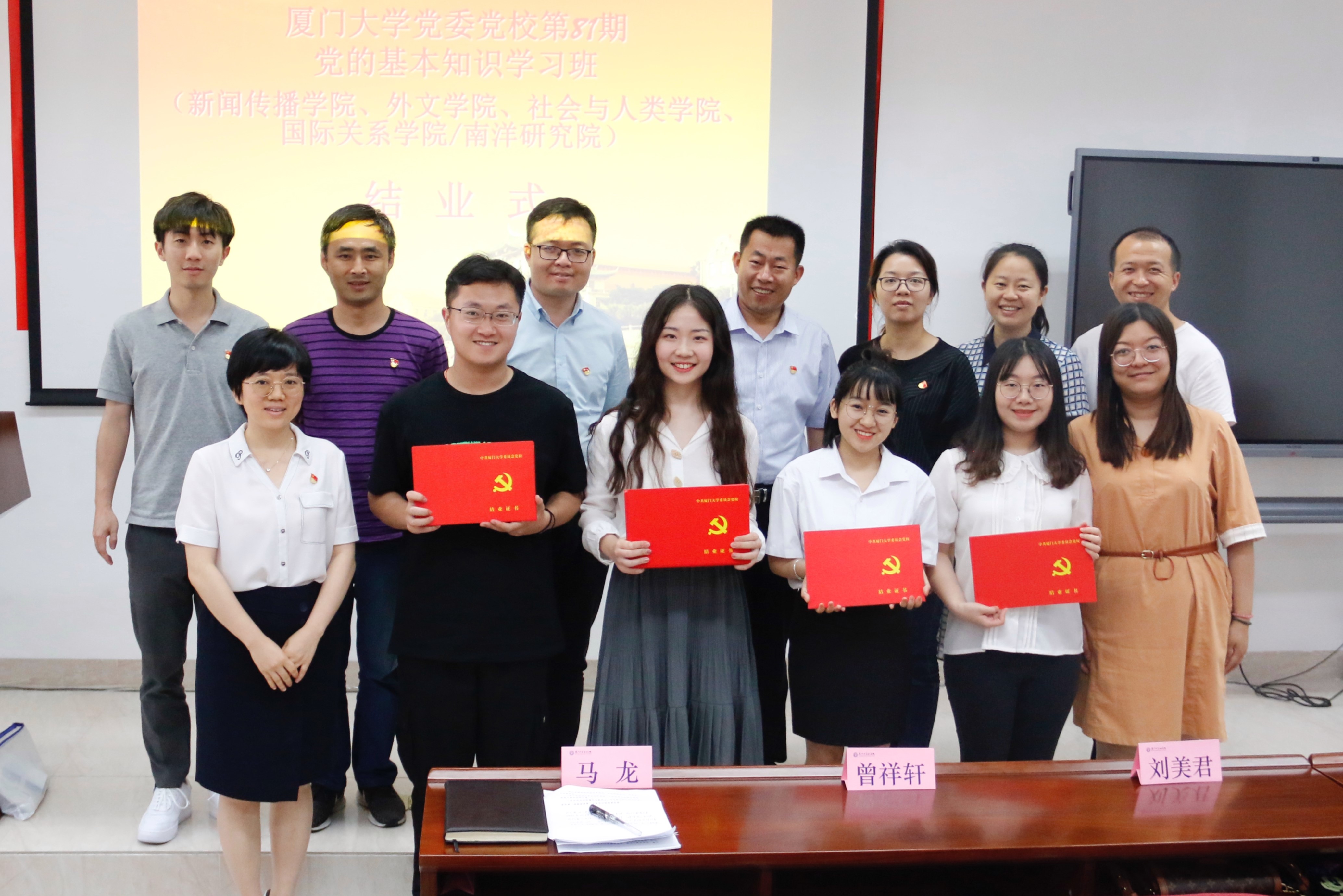 5月14日,厦门大学党委党校第81期学生党的基本知识学习班,暨新闻传播学院、外文学院、社会与人类学院、国际关系学院/南洋研究院学生党的基本知识学习班结业式在外文学院南光三112报告厅举行。外文学院党委副书记马龙,各学院带队教师、工作人员和全体学员出席了结业式,外文学院党务秘书余晓芳主持仪式。