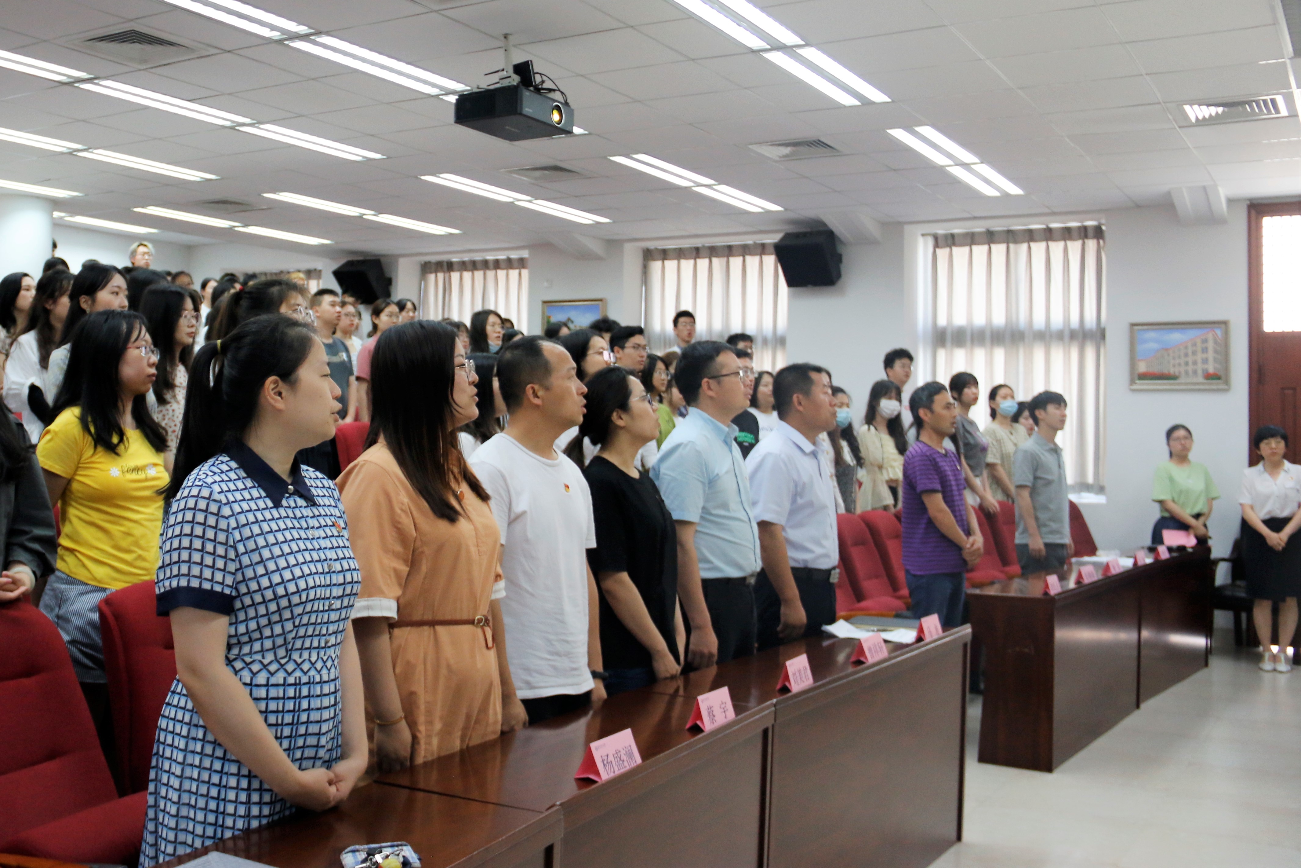 紧接着,仪式进入下一项议程。外文学院党委副书记马龙为四个学院的学员代表颁发证书,各学院党务秘书、带队教师上台与学员代表合影留念,全体与会人员庄严合唱《国际歌》。最后,所有在场老师和学员一同前往新闻楼前合影,拍摄了四个学院163位学员的结业“全家福”。
