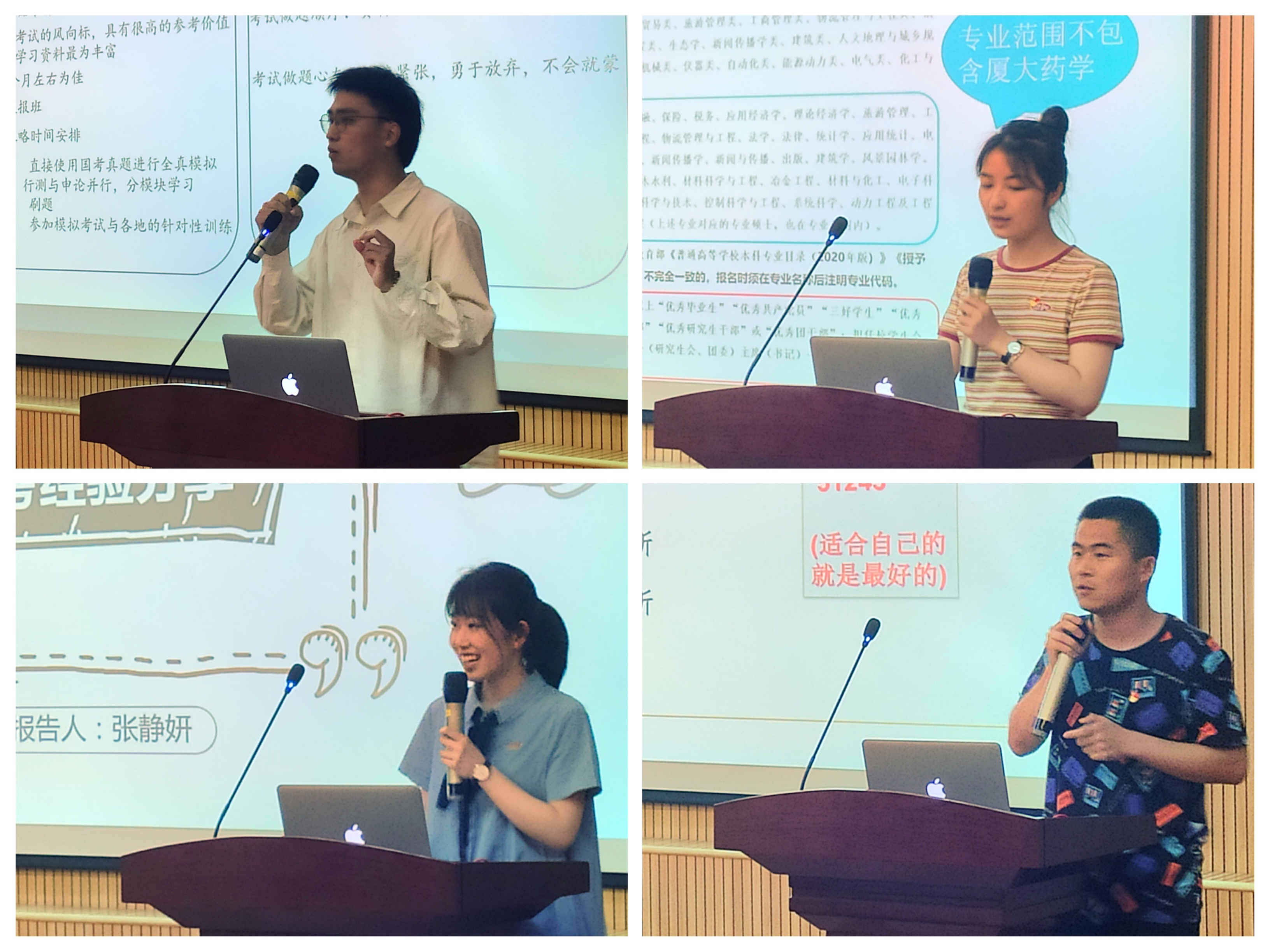 四位定向选调生代表包国梁、冯洁、张静妍、王军政依次分享了他们的备考历程。四位同学一致表示,选择了选调生,意味着选择了不负青春的奋斗人生。在备考中,要有千军万马勇闯独木桥的冲劲;在今后的工作中,更要有面对困难绝不低头的拼劲。立志将个人的理想追求融入党和国家的事业之中,为党、为祖国、为人民多做贡献。
