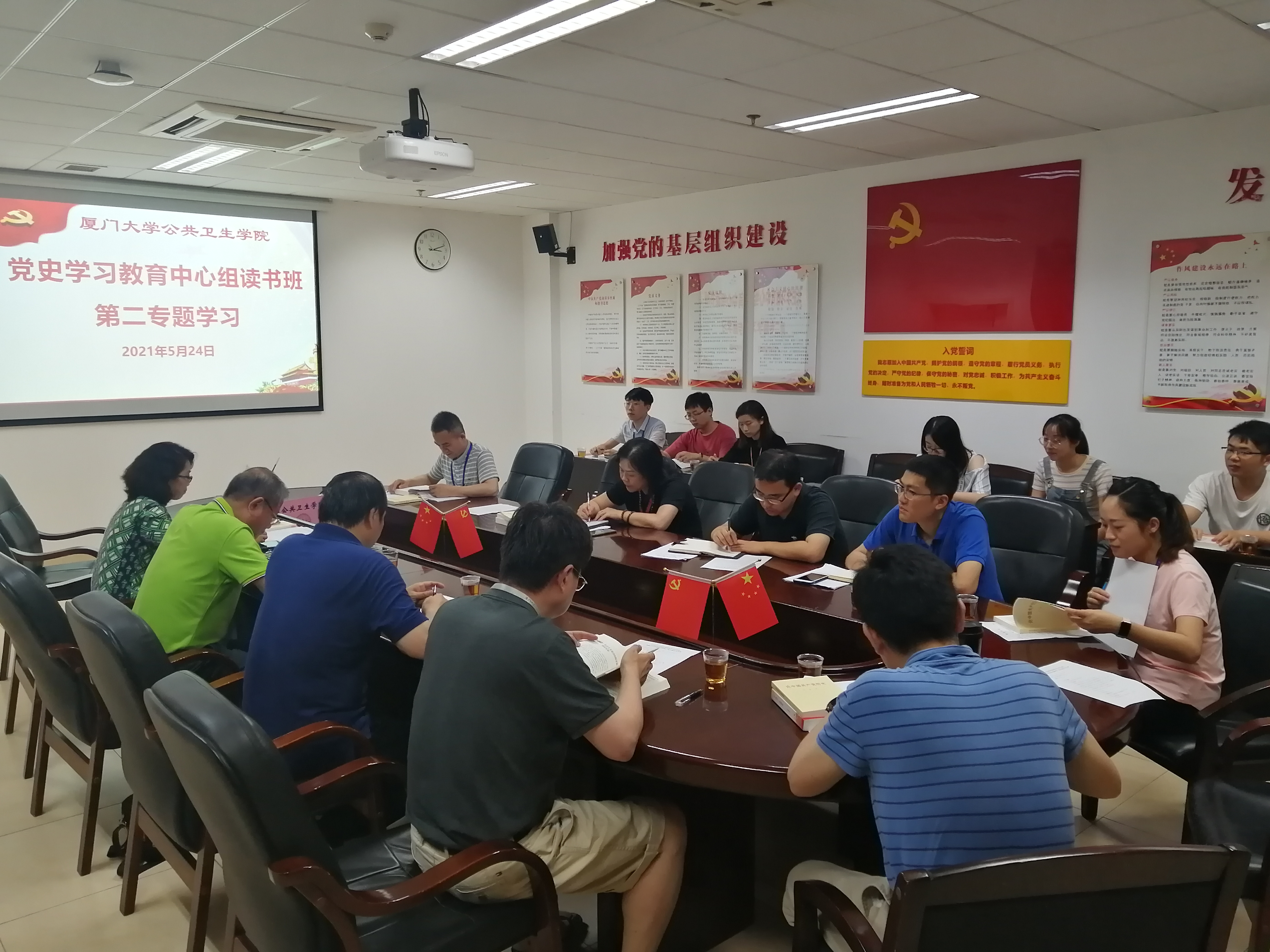 5月24日,公共卫生学院党委中心组在曾宪梓楼302会议室召开会议,专题学习社会主义革命和建设时期党的历史。学校党史学习教育第六巡回指导组组长、学院党建工作联络员黄田,学院党委委员、党支部书记、辅导员参加学习会。学院党委书记张琥主持会议。